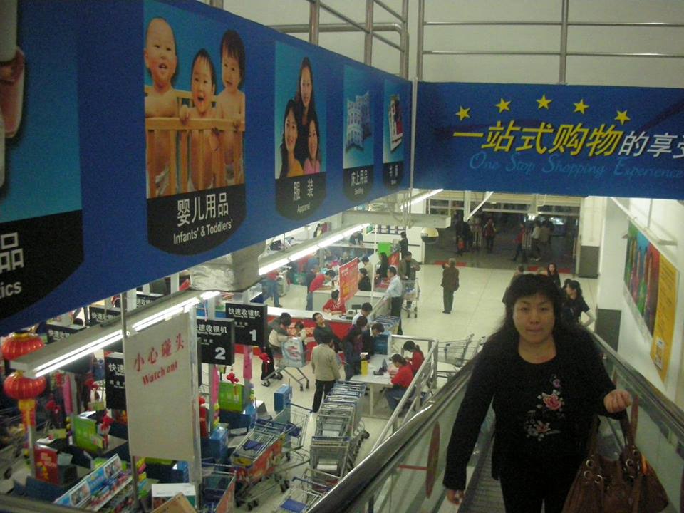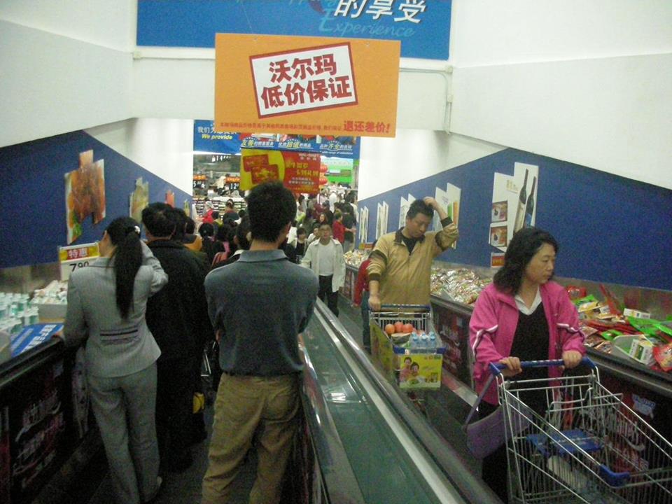 (これはよく買い物していた深セン南山のウォルマート(沃??)。万引き防止のため、まず入り口でコインロッカーに荷物を預けます。)