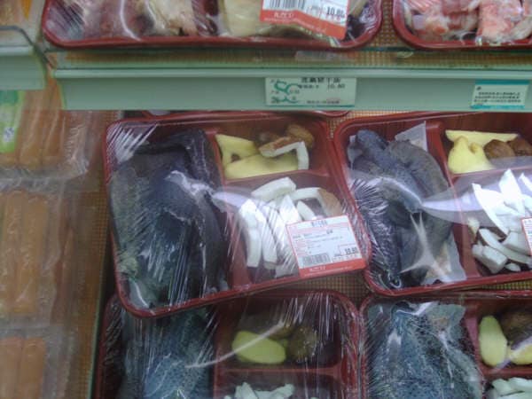 深センの多くのスーパーでは南方地方のため、果物の王様であるドリアンと香辛料の匂いが店内中に漂い、また水族館さながらの海鮮の種類の多さに圧倒されてました。また丸ごとそのままの形で吊るされたブタや鶏を見ると、食文化の違いを感じました。