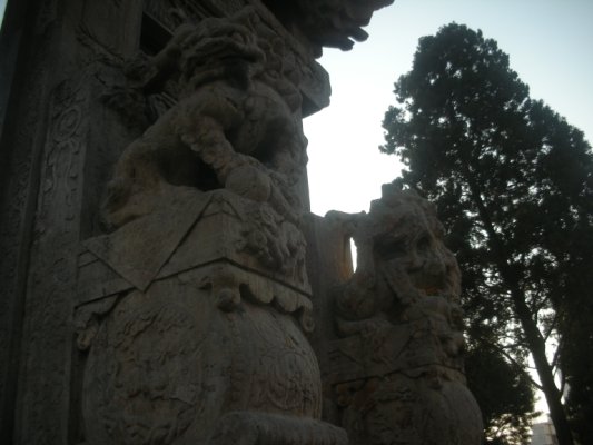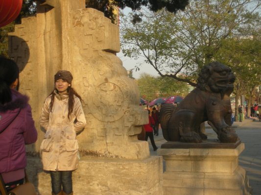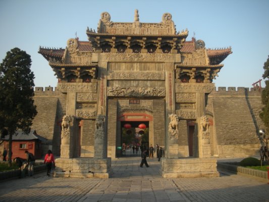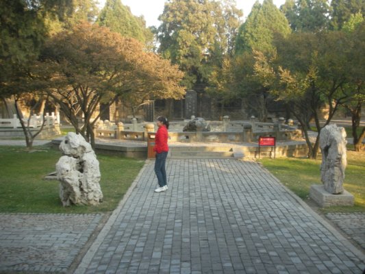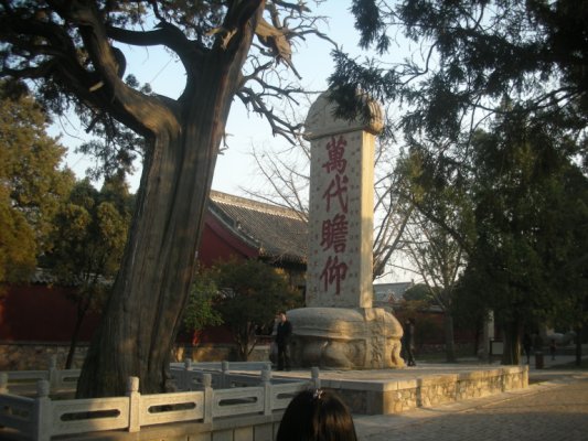 歴代の皇帝が泰山封禅の祭儀を行った場所ですが、泰山に比べて、観光客があまりおらず、ひっそりとしています。しかし、ひとつひとつじっくり見ることができたので良かったです。はるかに泰山が望め、これからあれに登るのかと思うと、ワクワクしてきました。