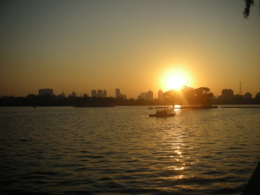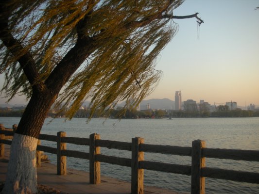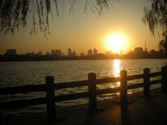 大明湖は6つの島がある小さな湖で、公園に囲まれています。多くの泉で形成され、中央に大きな噴水があります。夏になると巨大な葉を持つ蓮が咲き乱れるようです。