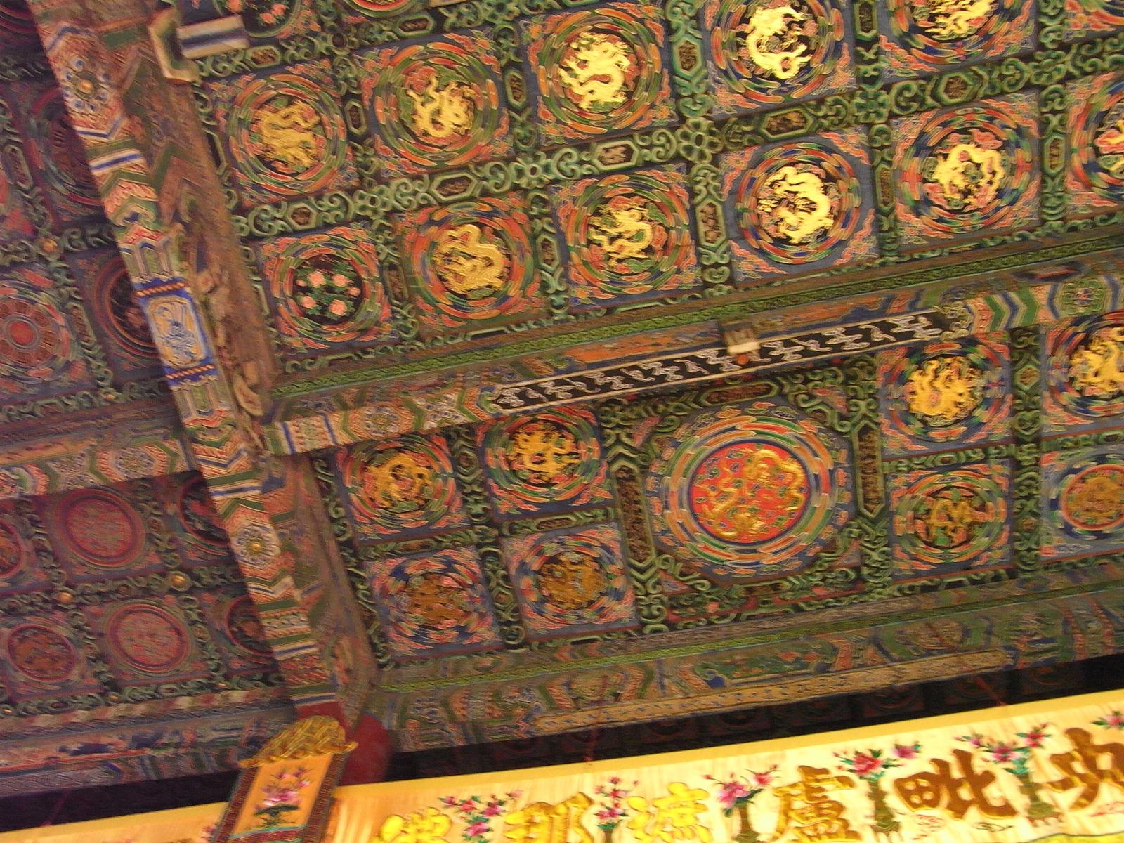 上華厳寺、大雄宝殿の天井。美しい模様があります。