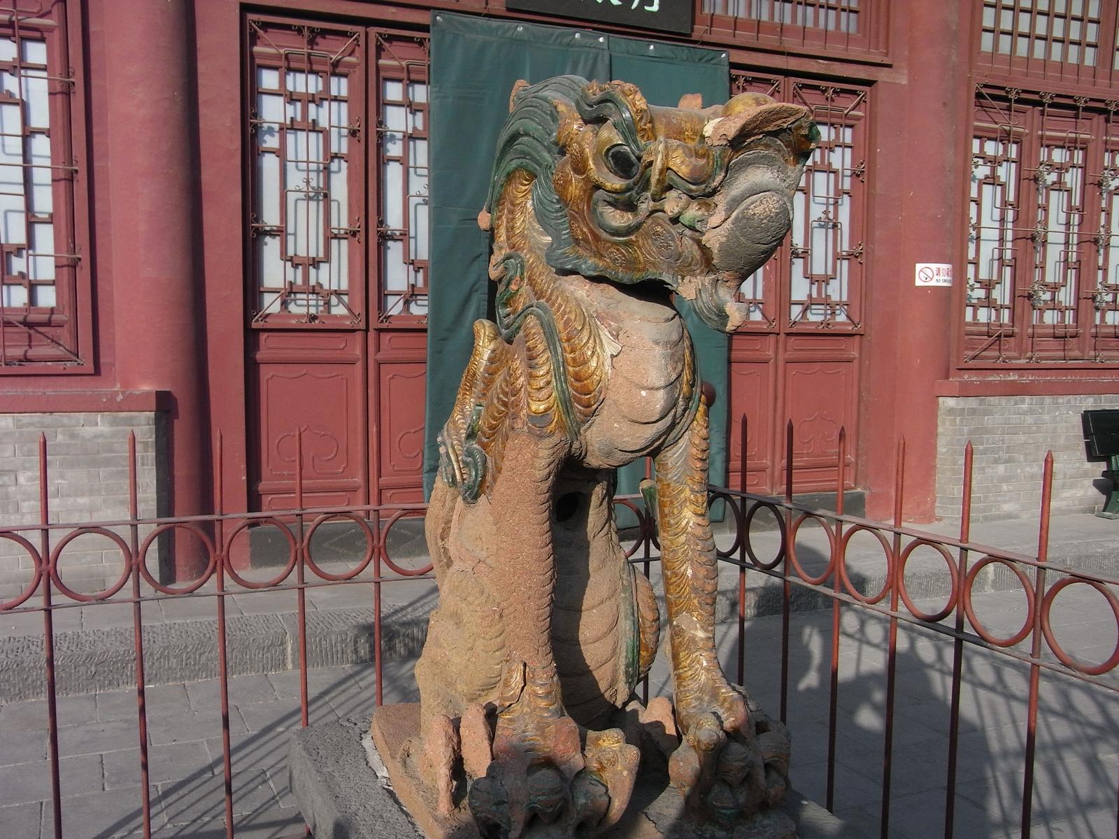 上華厳寺の大雄宝殿の魔よけの獅子。
