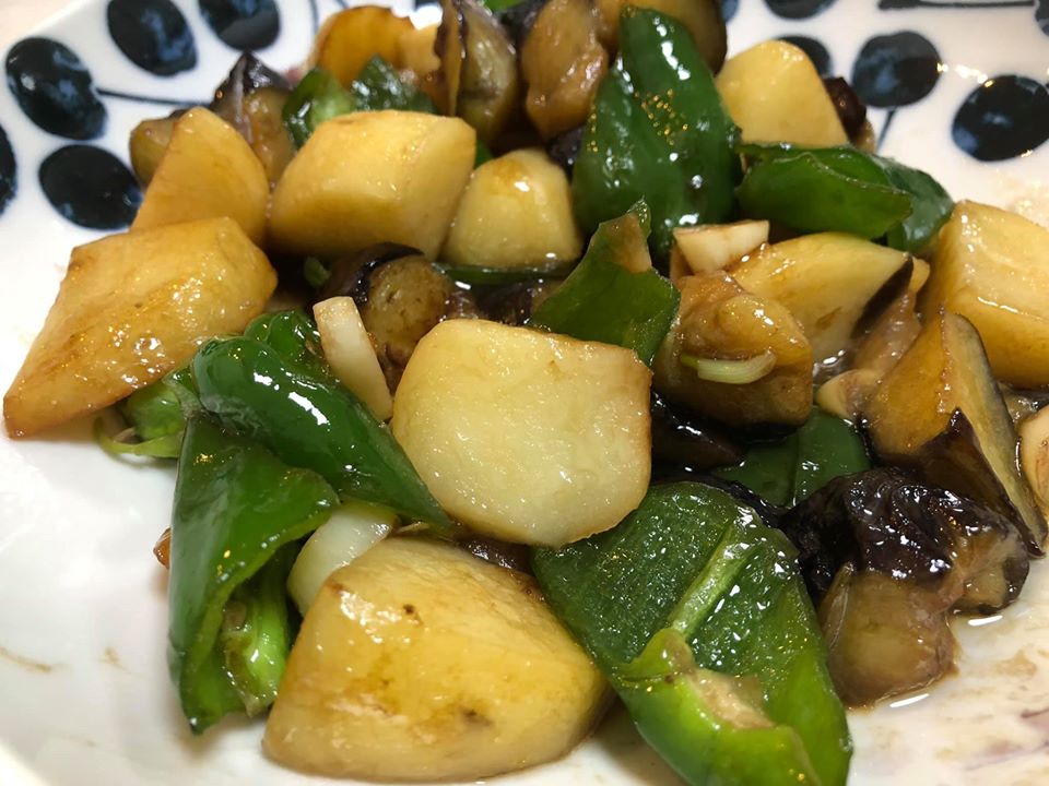 地三鮮とは茄子、ピーマン、ジャガイモの3つの野菜を一口大の大きさに切って 素揚げしてから醤油味に炒めたあげた料理で、中国東北地方の代表的な家常菜です。