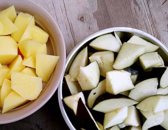 1.ジャガイモ、ナス、ピーマンは食べやすい大きさにぶつ切りにする。