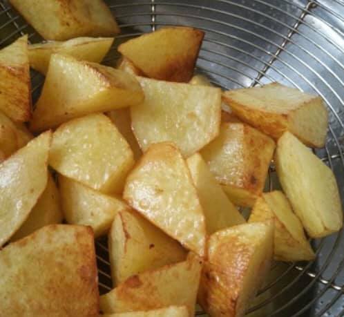 2.熱した鍋に多めの油をひき、ジャガイモを揚げる。