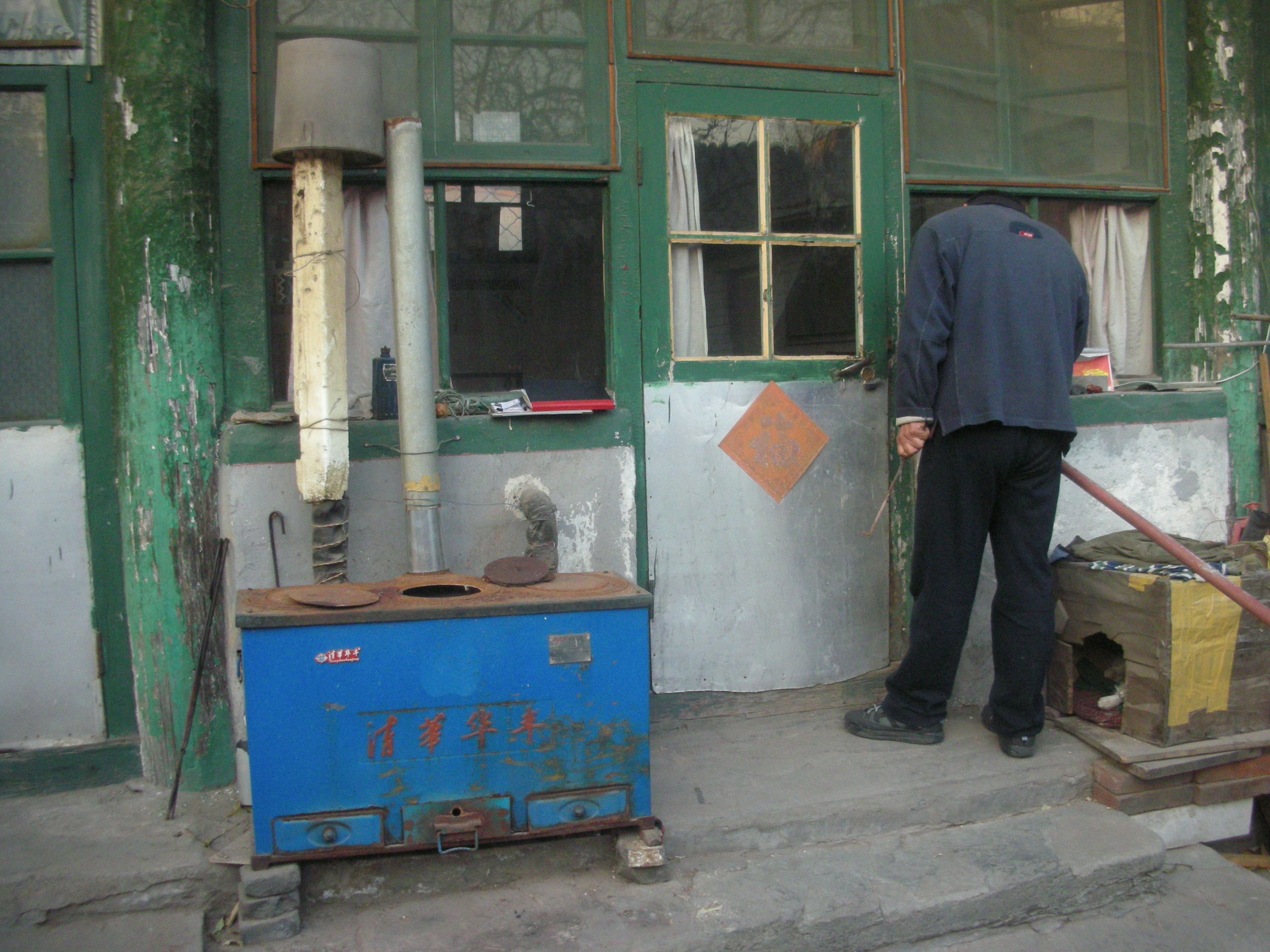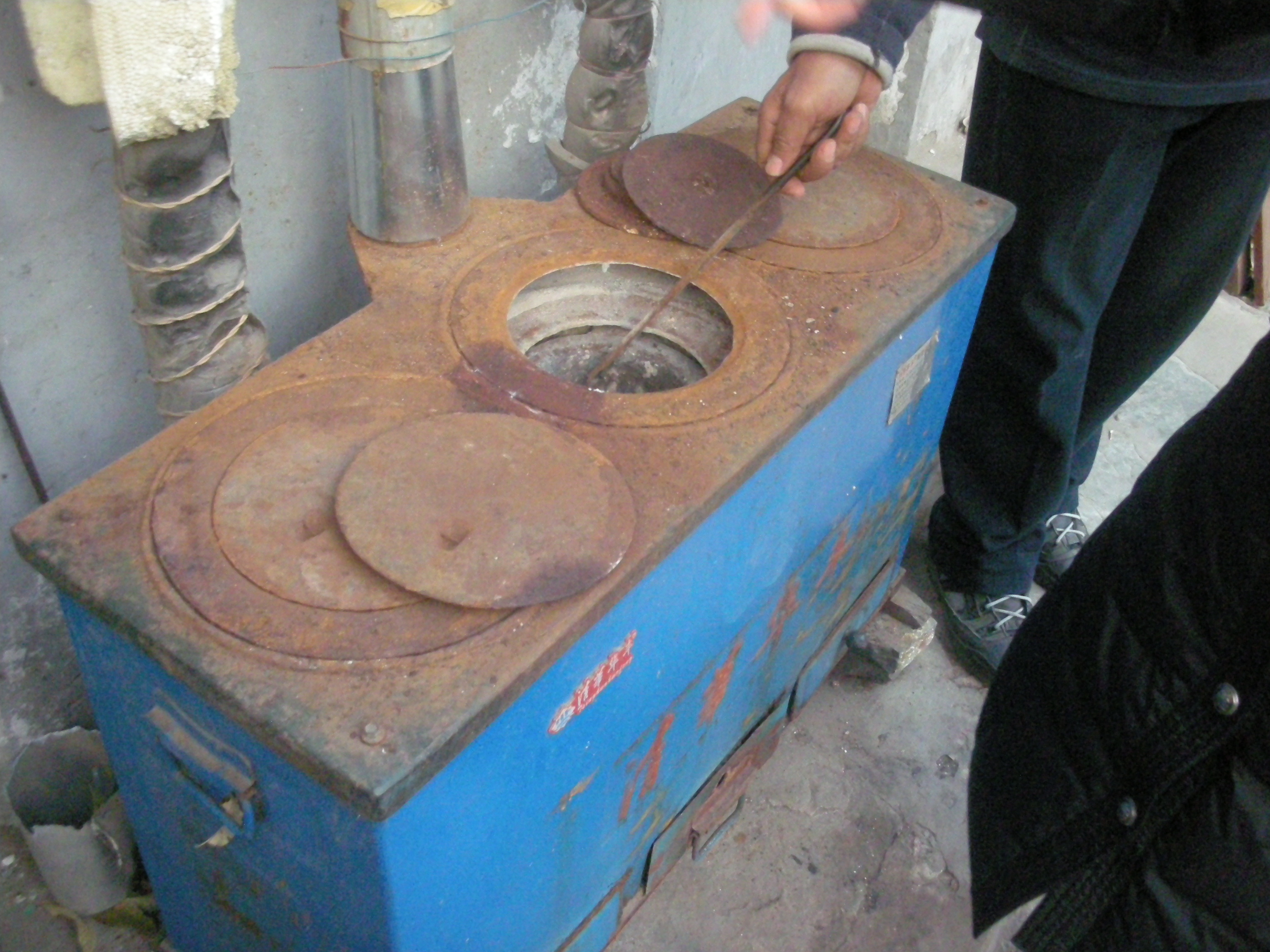 (四合院作りの住宅の木炭の暖炉。部屋をこれで暖める。)