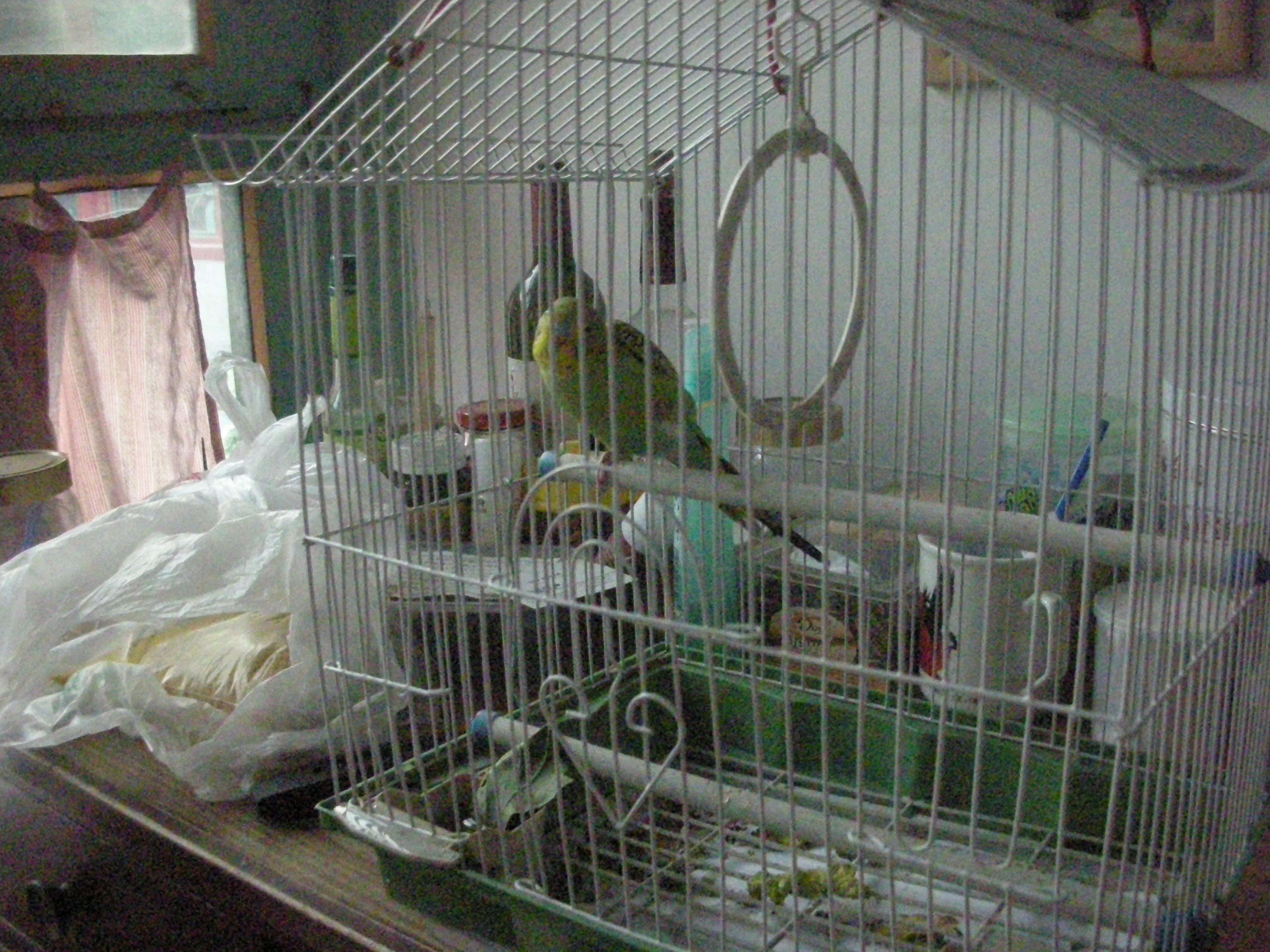 (四合院作りの住宅で飼っているセキセインコ。)