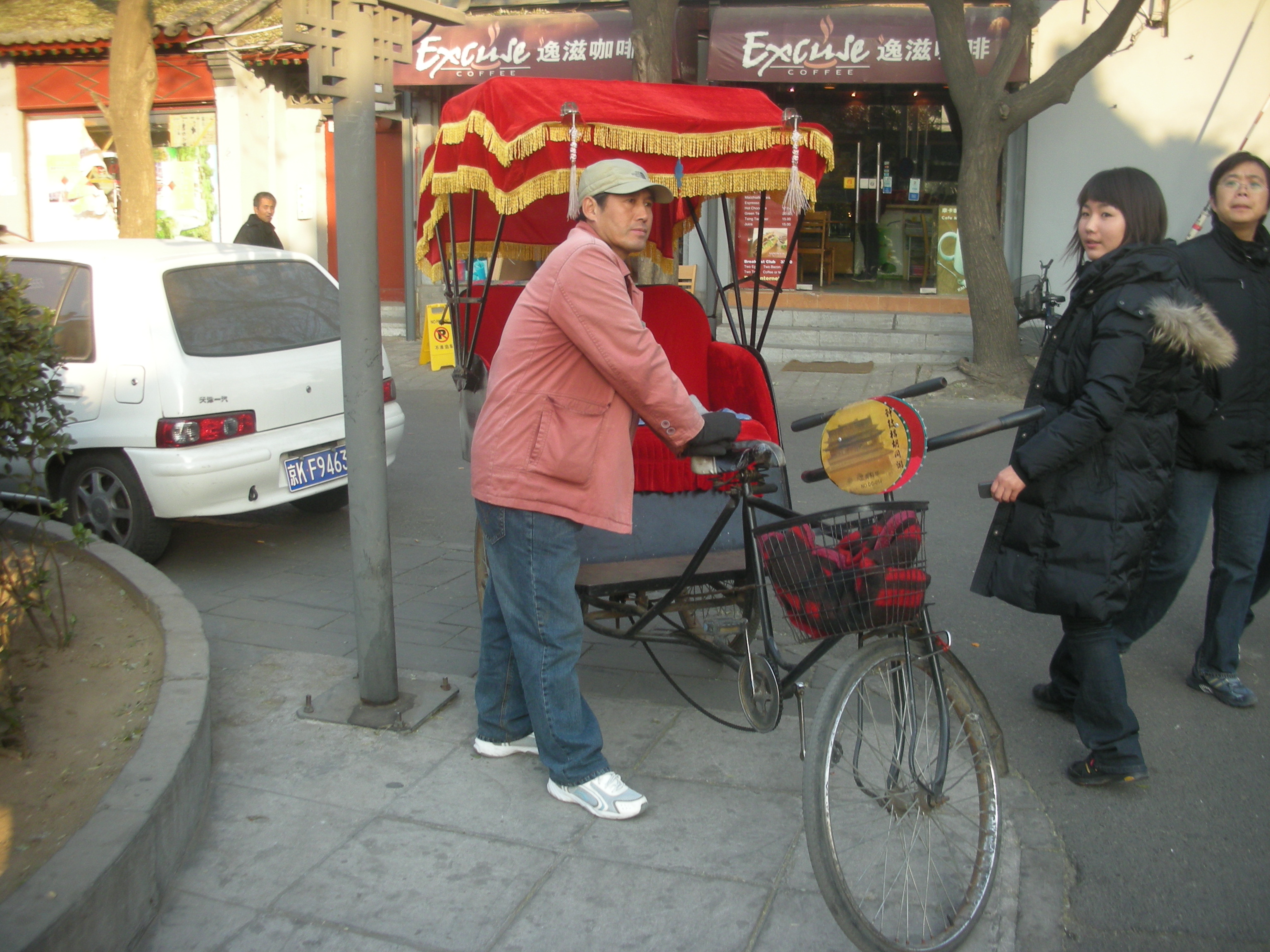 (胡同の路地の人力車。)