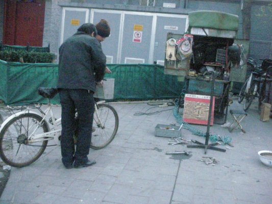 (胡同の自転車修理店。)