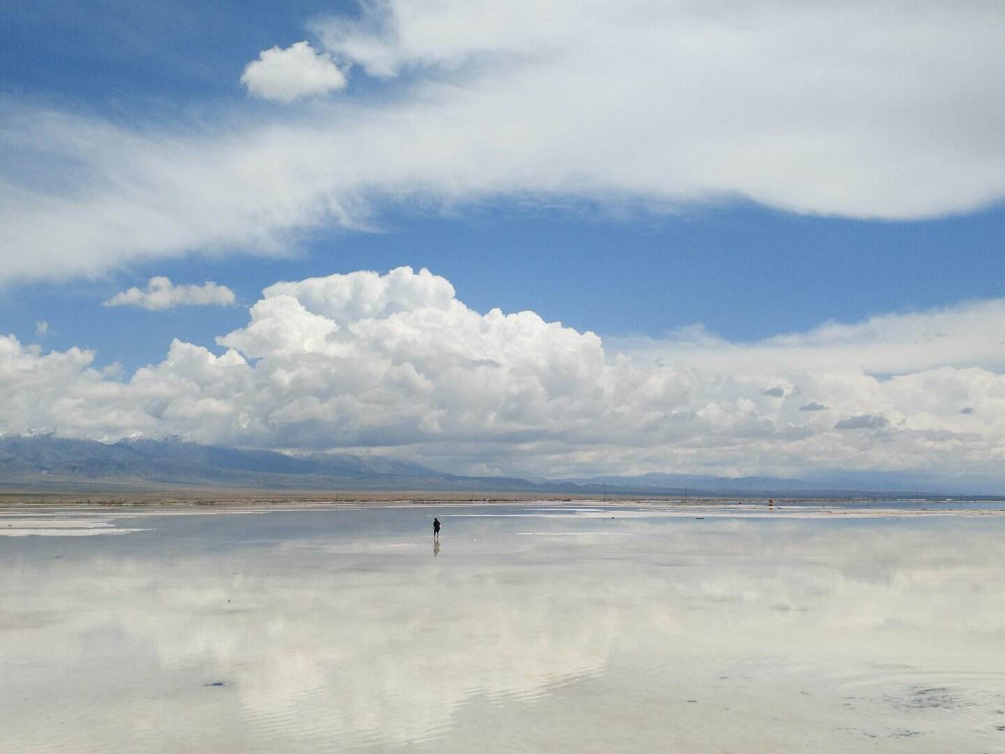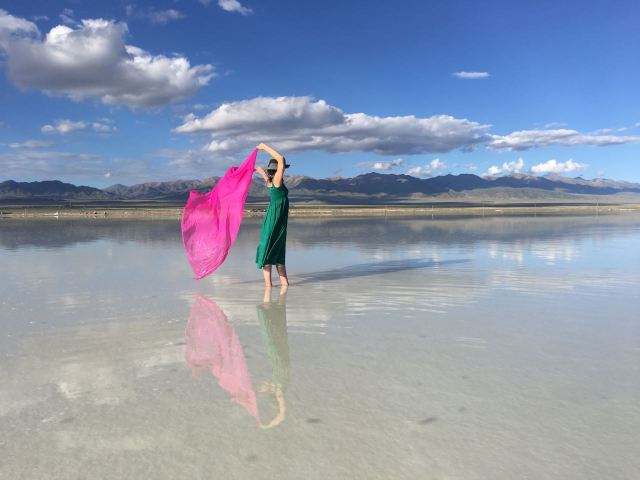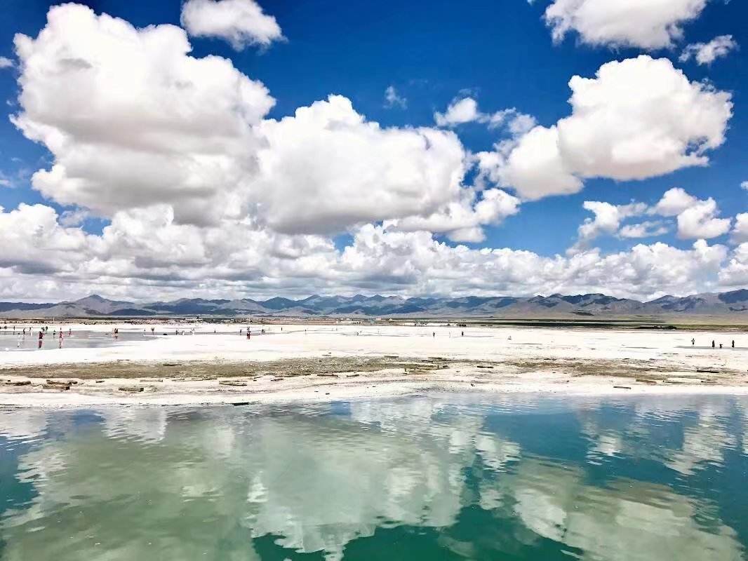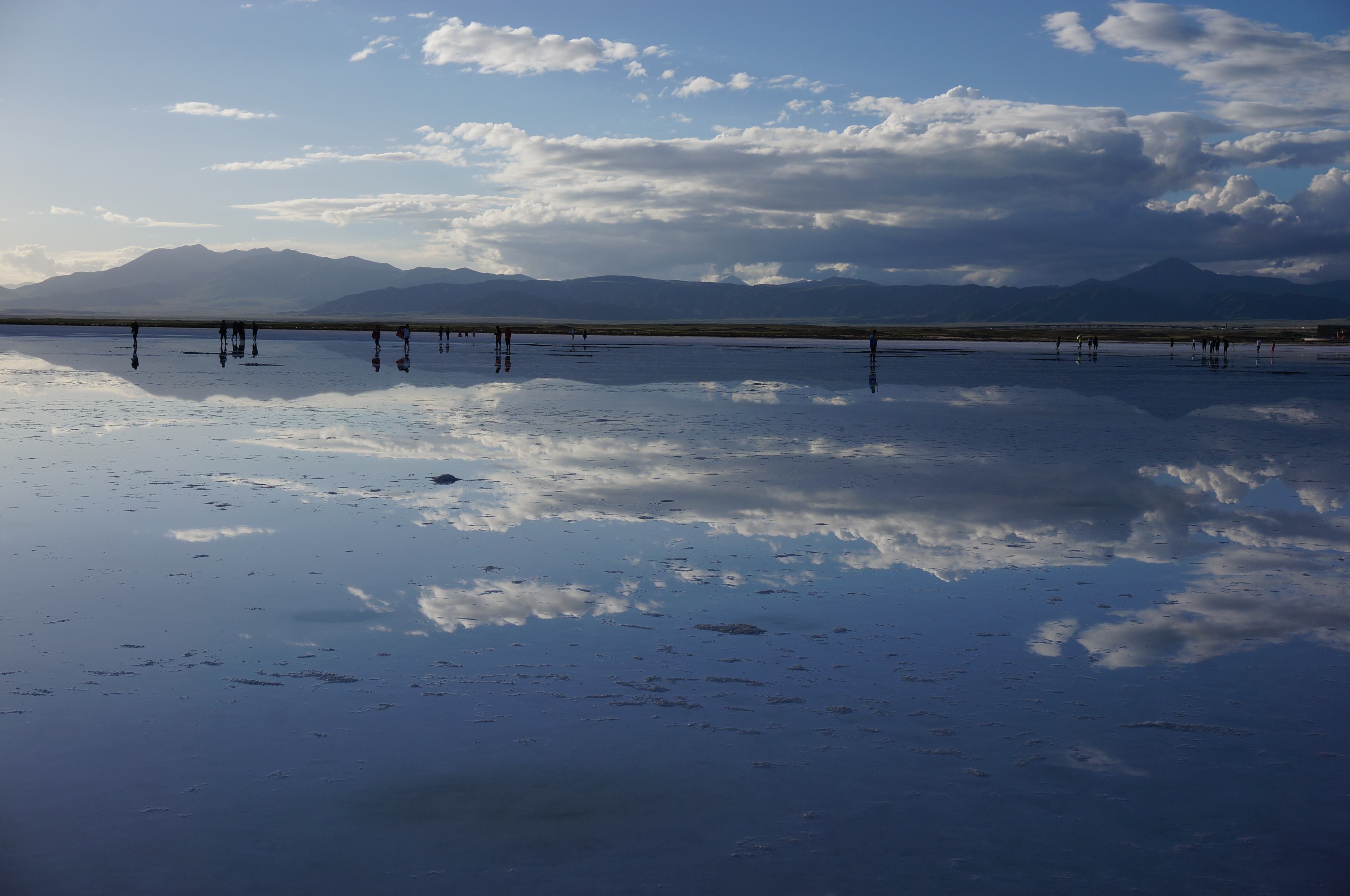 一面遠浅の湖が広がり、まさに天空の鏡のような青海省の海西チャカ塩湖(文さん特別編)