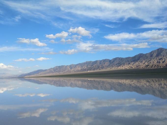 塩湖といえば、南米ボリビアのウユニ塩湖が有名ですが、中国にも天空之?と呼ばれる海西チャカ塩湖があります。一面遠浅の湖が広がり、風で水面が波立たなければまさに天空の鏡のようです。