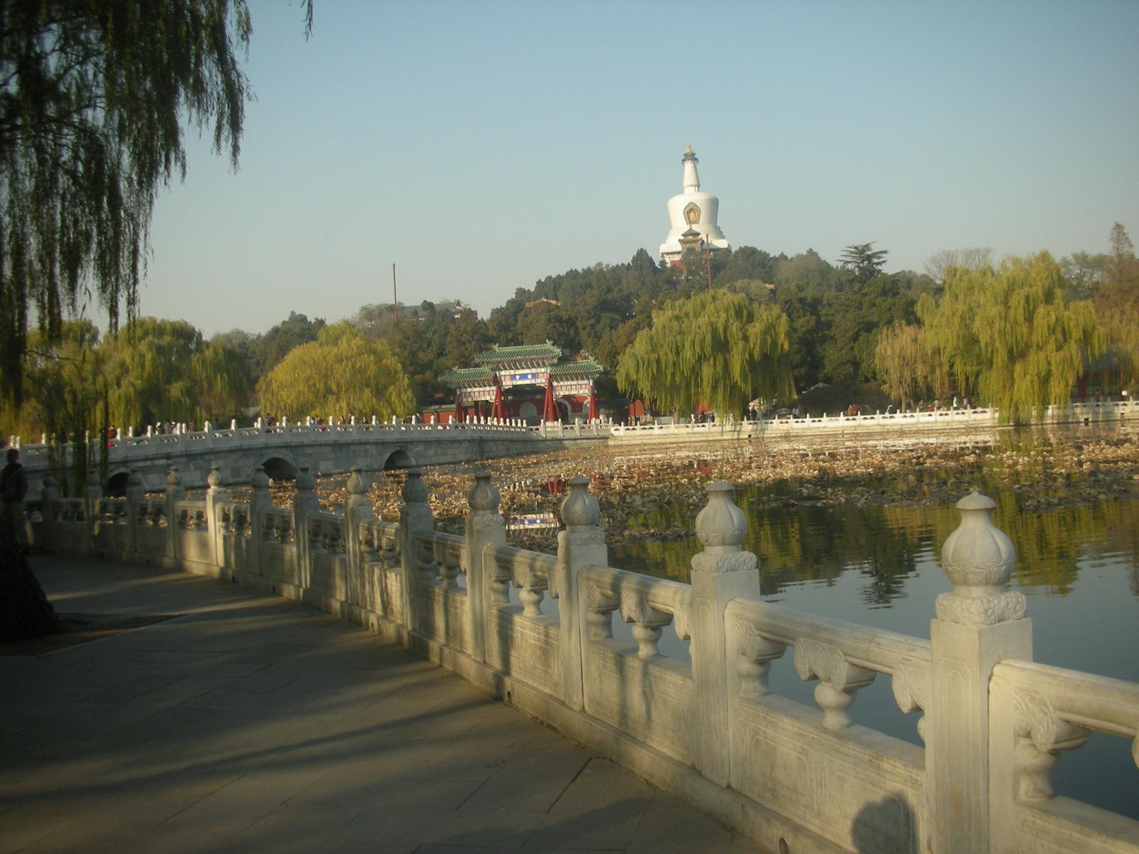 (永安橋。橋の向こうは瓊華島 中央は白塔(チベット仏教の塔)。)
