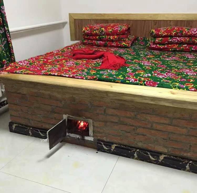 (中国の北で見られるオンドルです。下から石炭を燃やして温めます。)