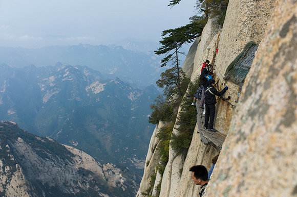 東峰から南峰へ向かって進むと、絶壁に設けられた幅数十cmの足場しかない長空桟道があります。ここは希望者だけが足を踏み入れる、いわば肝試しのポイントです。ご興味があれば税火歩いてみてください。