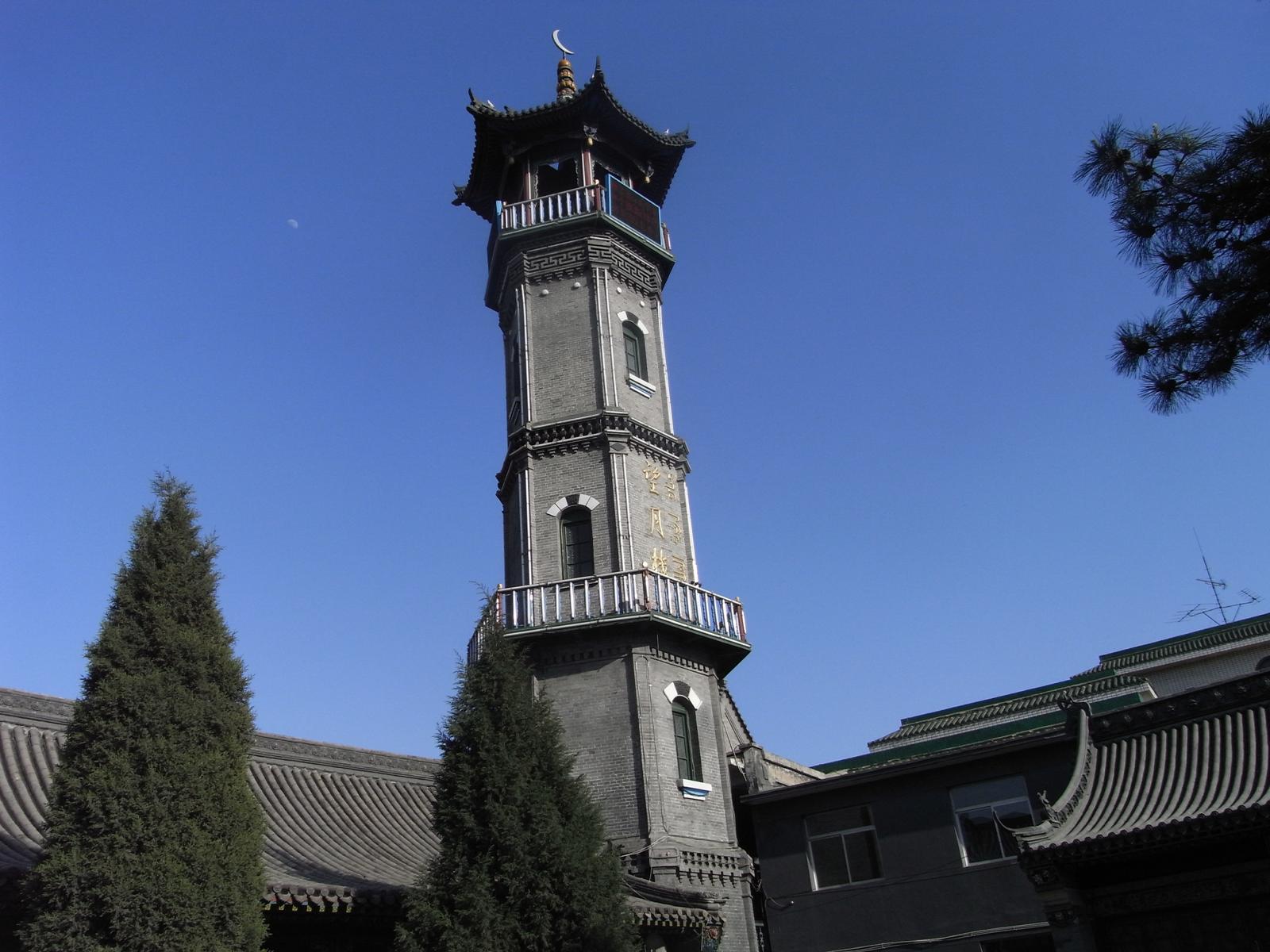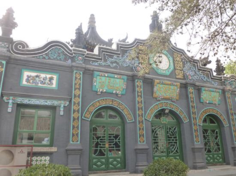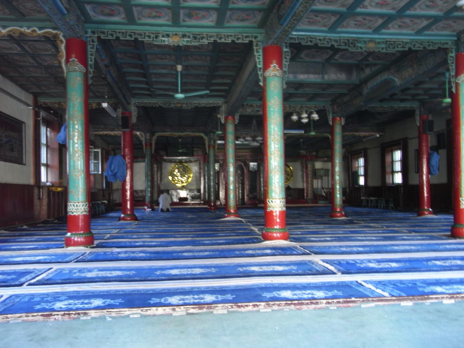 イスラム風情街の中心にはイスラム教の寺院である清真大寺があります。これは清の乾隆帝の時代、イスラム族が大量に新疆からフフホトまで移住して来て、広大なモスクを建てたことがその起源とされています。寺院の正門は聖地エルサレムのある西に向って建てられ、色々なイスラムの模様が装飾されています。寺院の建築は、聖殿、講堂、イスリム浴室などがあります。またイスラム教徒の寄付で、境内に6角4階の望月塔が建築され、貴重なアラビア語のコーラン経30冊収蔵されています。