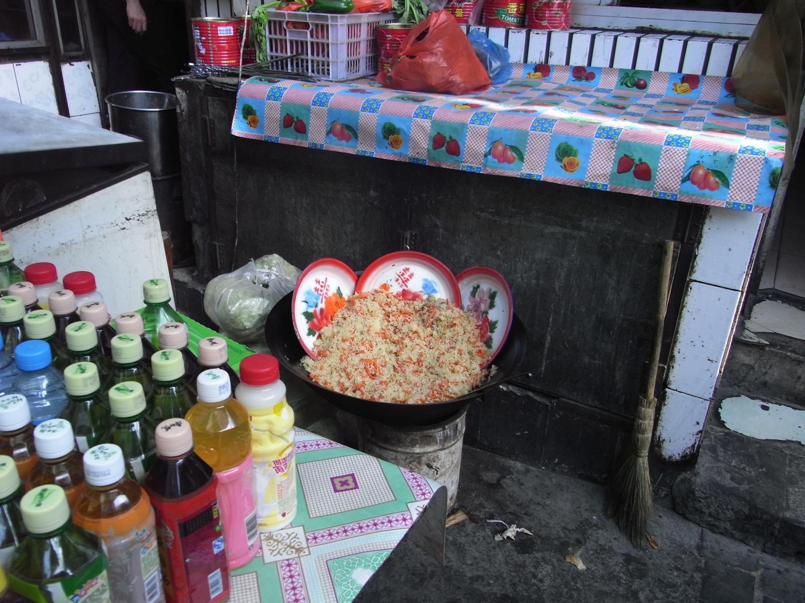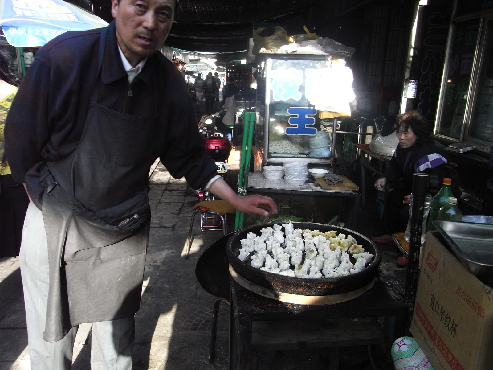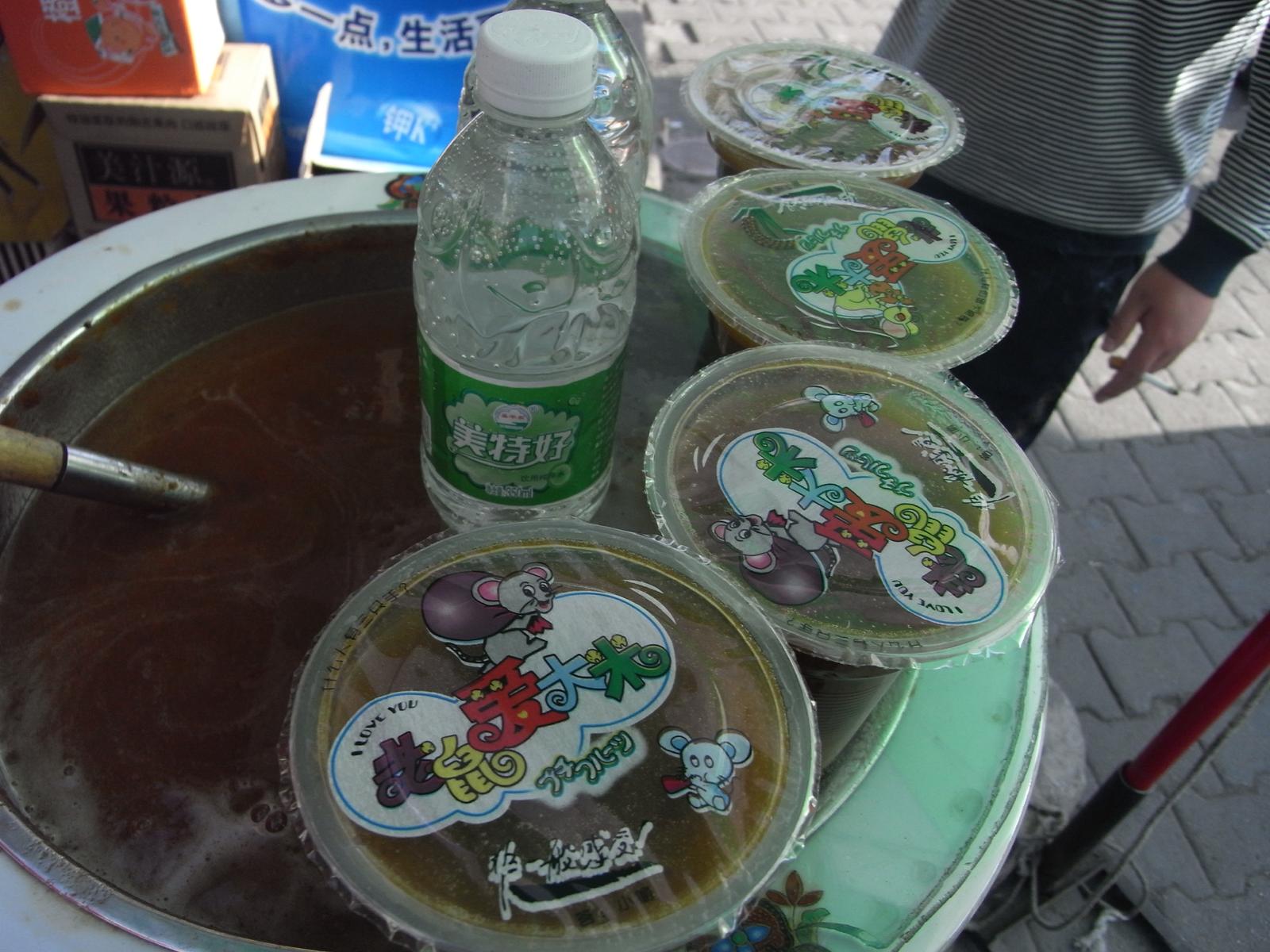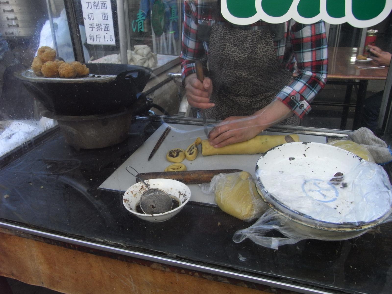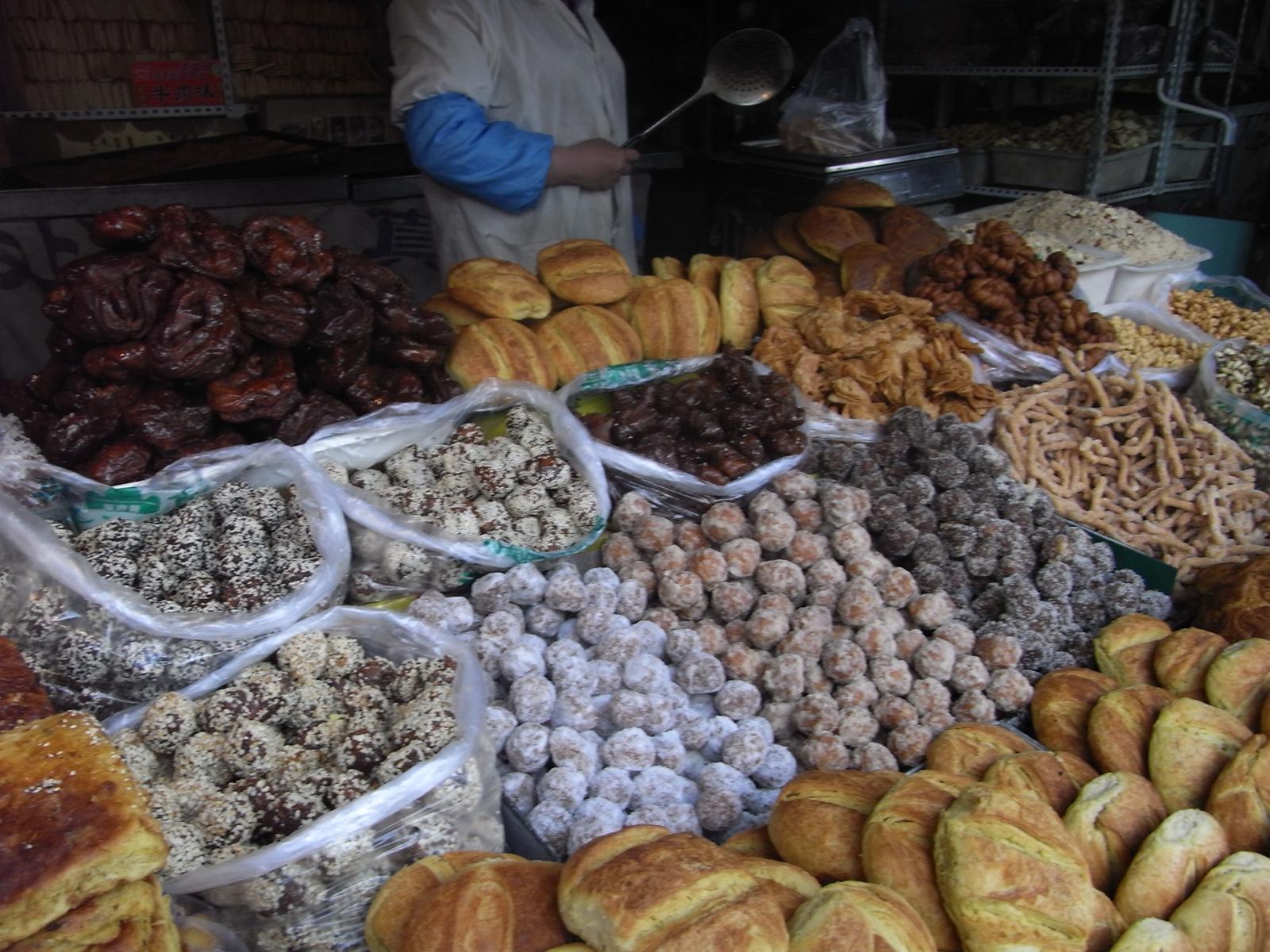 (モンゴルB級グルメ店。粽屋さんが見えます。赤棗入りの粽もありますね。また月餅屋さんもあります。)