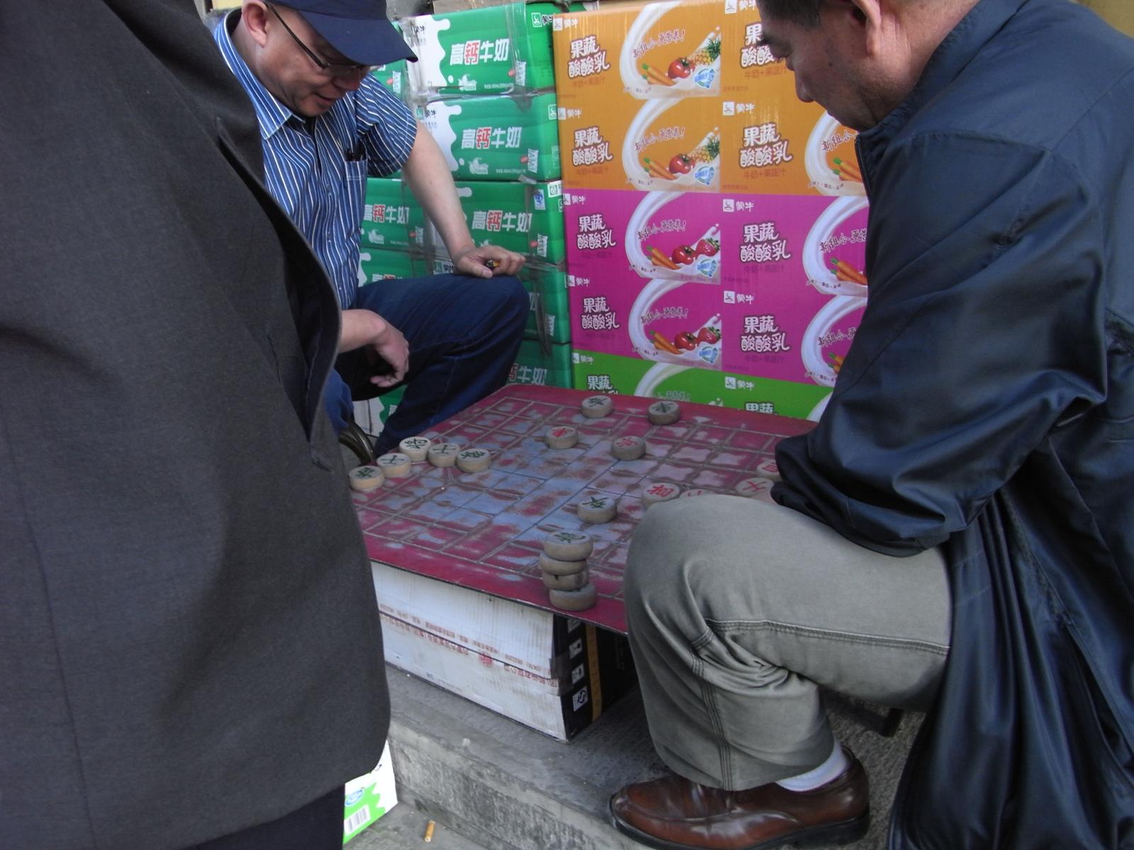 (何やら道路で人だかりが。覗いて見ると中国式囲碁でした。)