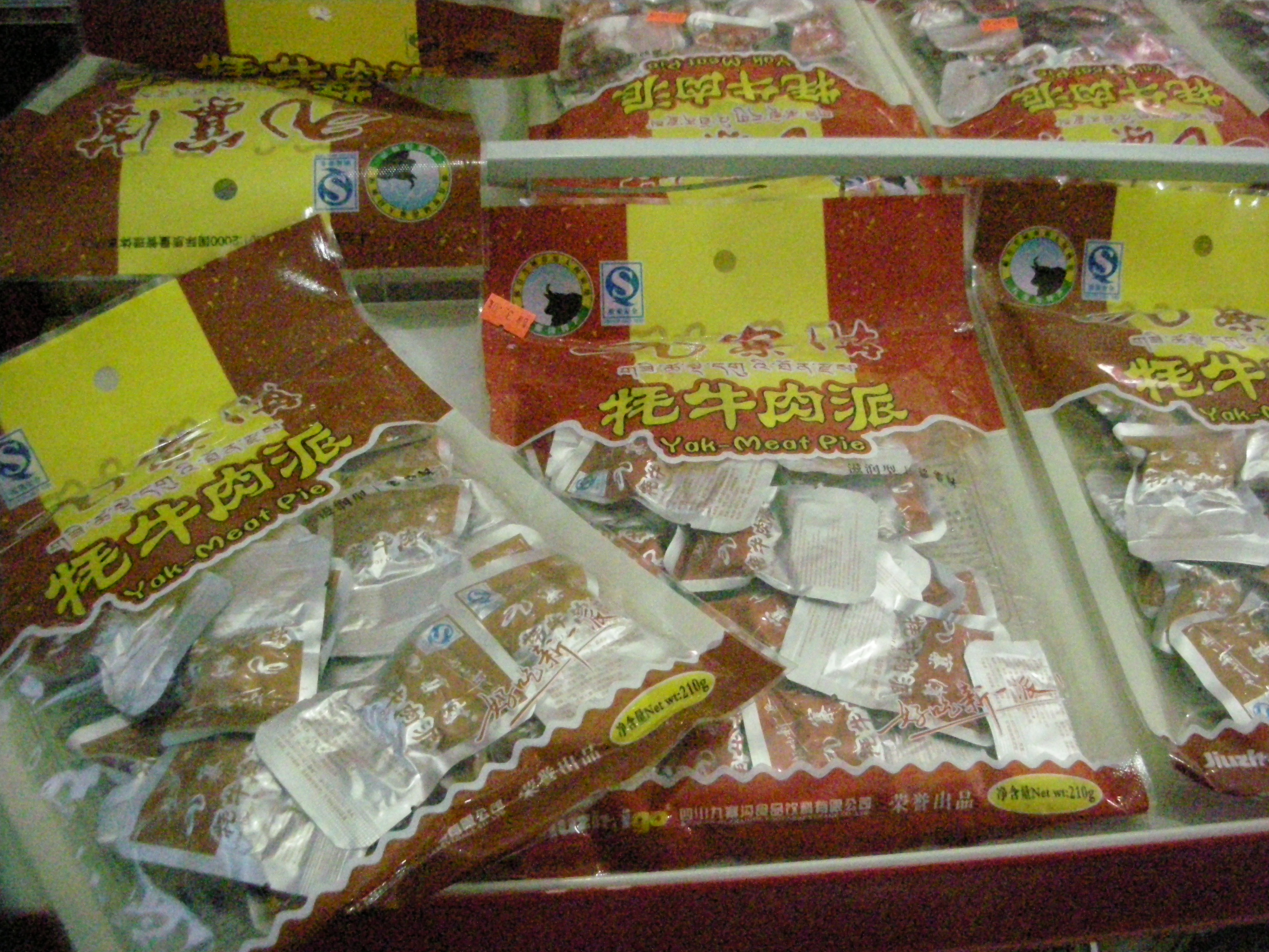 (チベット族のスーパーで売られていたヤクの干し肉。なかなかの珍味です。)