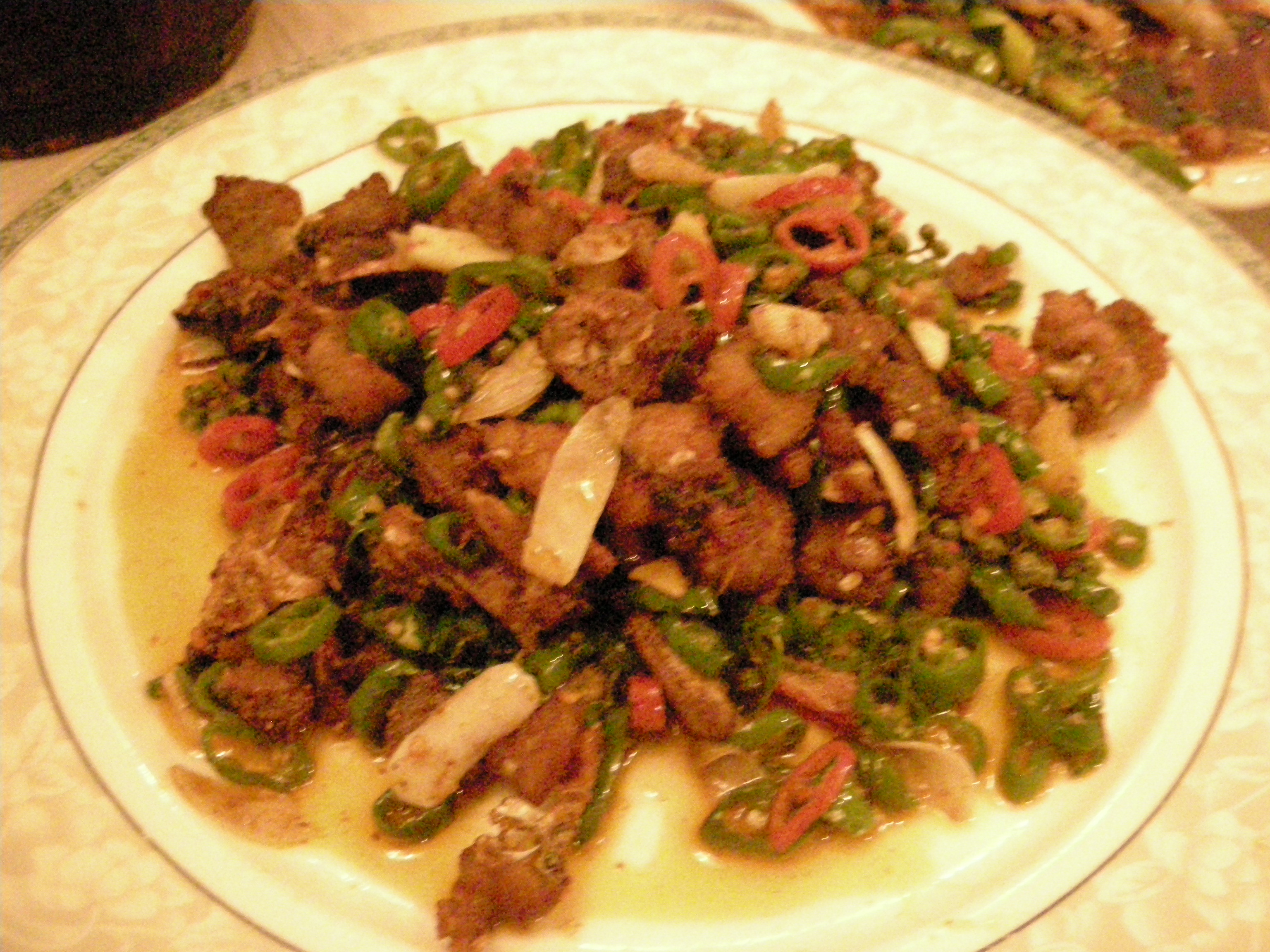 (マーシーの三分クッキングでも紹介した青唐辛子の豚バラ肉炒め(辣椒炒肉)です。)