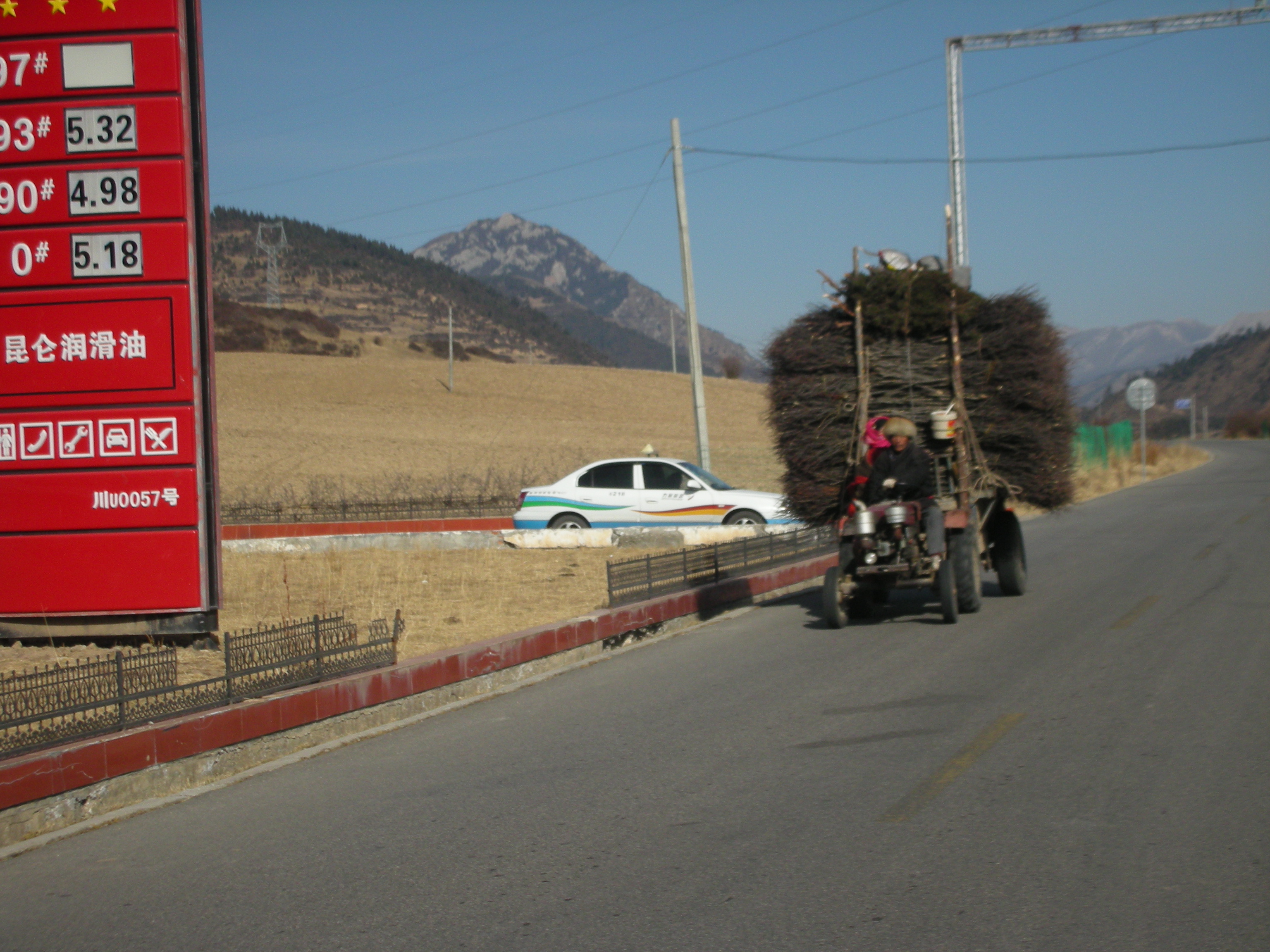(またまた放牧を行うチベット族の男性の農耕車とすれ違いました。薪が車から溢れそうです。)