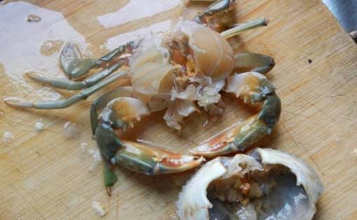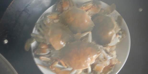 7、ワタリガニを6の上に乗せて8分蒸し器の中に入れて蒸したら出来上がり!