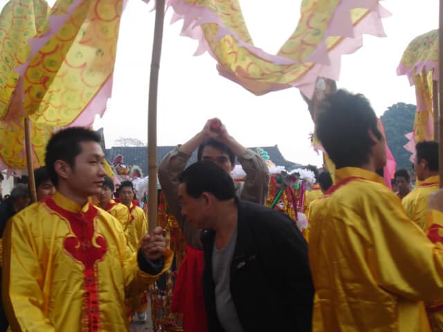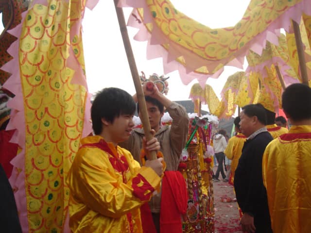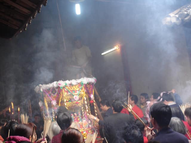この春節を祝う風習のひとつに御神輿の中に祖先の人形を入れ、祖先を敬うものがあります。祖先を敬う気持ちが伝わってきますね。