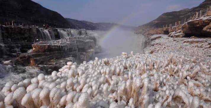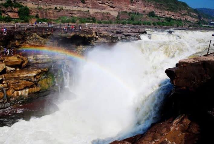 今日は山西省にある黄河最大の滝、黄河壺口瀑布について紹介いたします。ここは川幅が300m以上もあったのが、わずか50mほどに狭まり、落差約30mの滝となって落ち込んだ場所です。この場所は河の流れが壺みたいな形状をしていることから「壺口」と呼ばれ、滝と合わせて黄河壺口瀑布と呼ばれるようになりました。