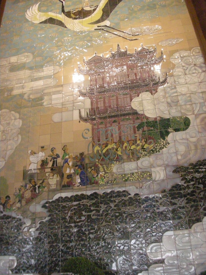 (黄鶴楼内部。鶴の絵が描かれた壺があります。)