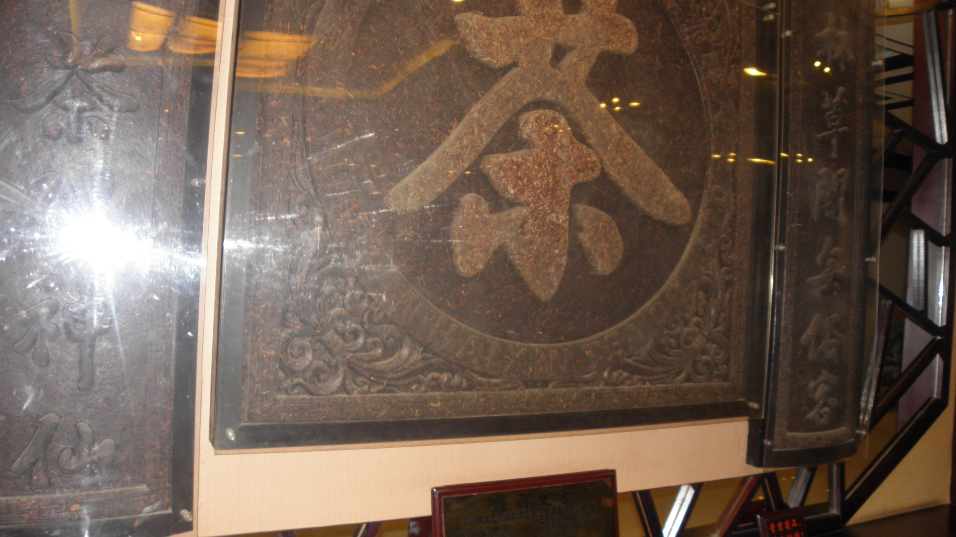 (まるで彫刻のように圧縮加工されたプーアル茶の茶葉。これを崩して飲むのはもったいないですね。)