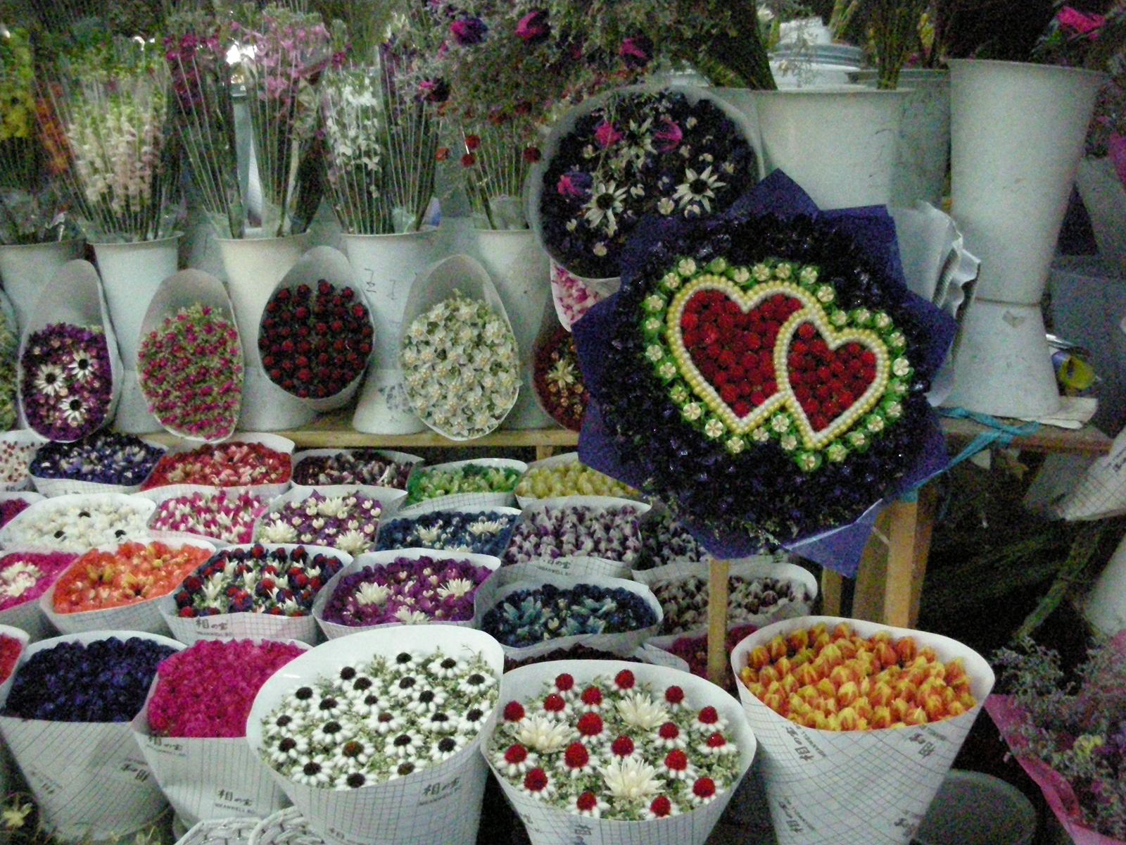 (昆明は一年中花が開き誇るので花城と呼ばれます。花束として美しく加工され、花市場で売られていました。)