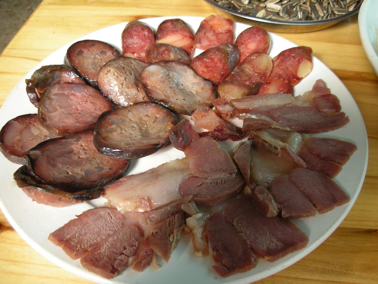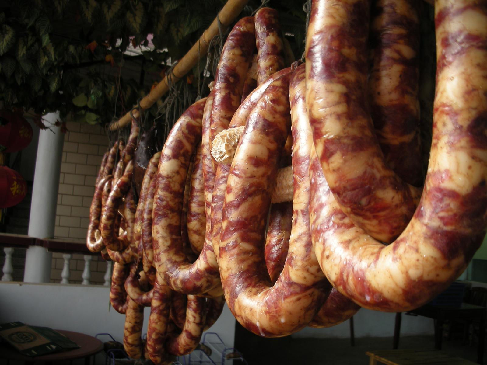 火腿とは中国語ではハムと言う意味ですが、実際は生ハムです。豚の後脚に塩を塗りつけて、自家製で生ハム作りしていました。天上から吊るしてから半年後ごろから食べられますが、2年以上ものは熟成して本当に美味しいです。