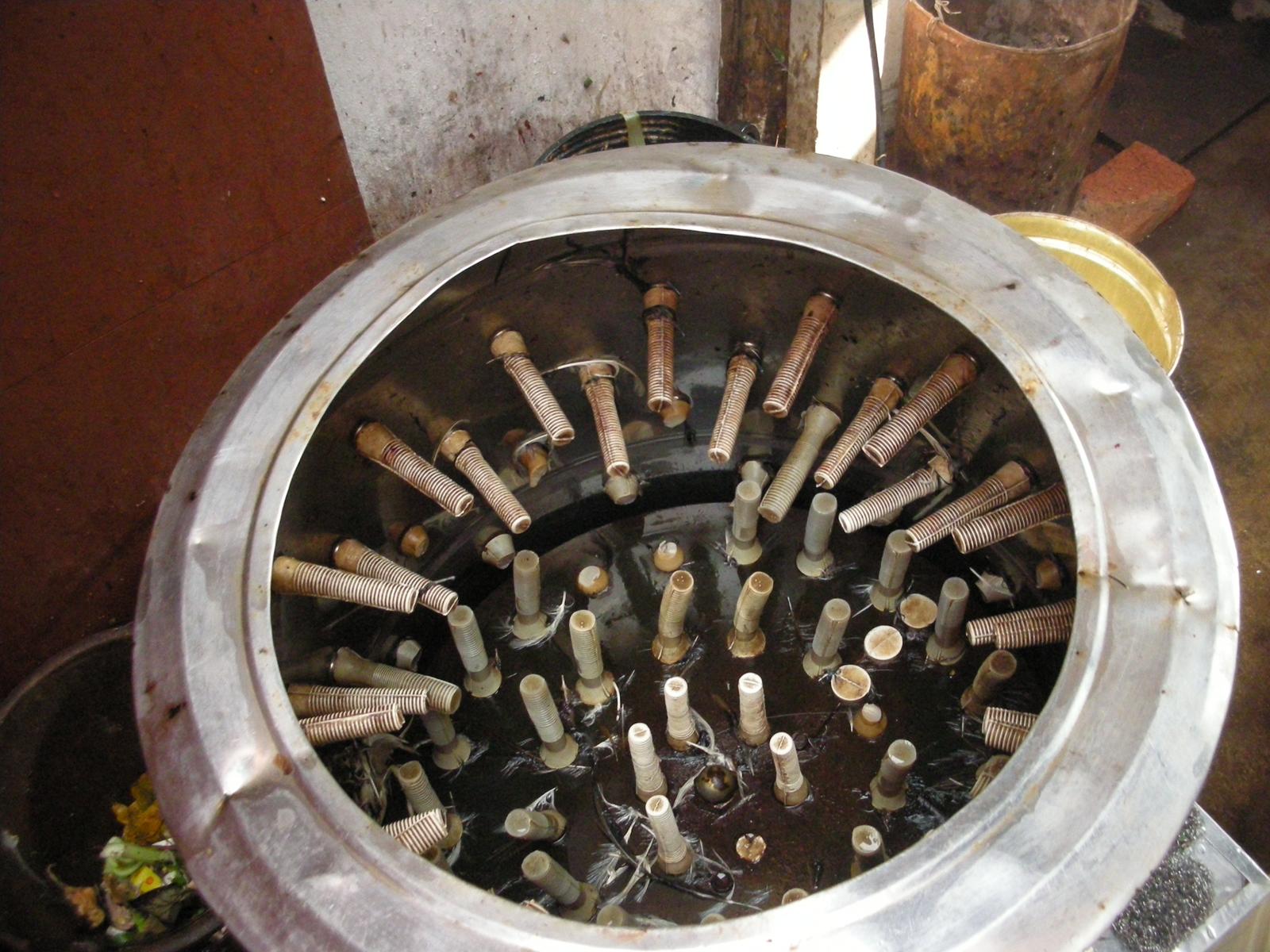 (これなんだと思いますか?これは鶏の羽を剥ぐ機械なんです。)