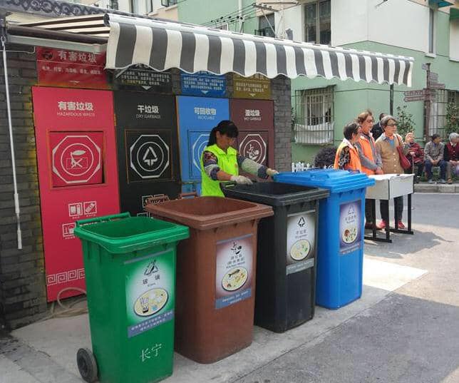 上海市のごみはリサイクルごみ、有害ごみ、資源ごみ、生ごみの4種類に分けられます。 上海市の市民は、最初はどのように捨ててよいかのかわからず、またごみの分類もわかりませんでした。しかしボランティアのサポートによって今では住民の90%が正確にごみを分類することができるようになりました。 ごみの分類に加え、ごみ捨て時間と場所が決められています。住民がごみを捨てる時間のピークに合わせ、ごみ捨て時間を1日3~4時間とし、300~500世帯毎にごみ捨て場を設置しています。