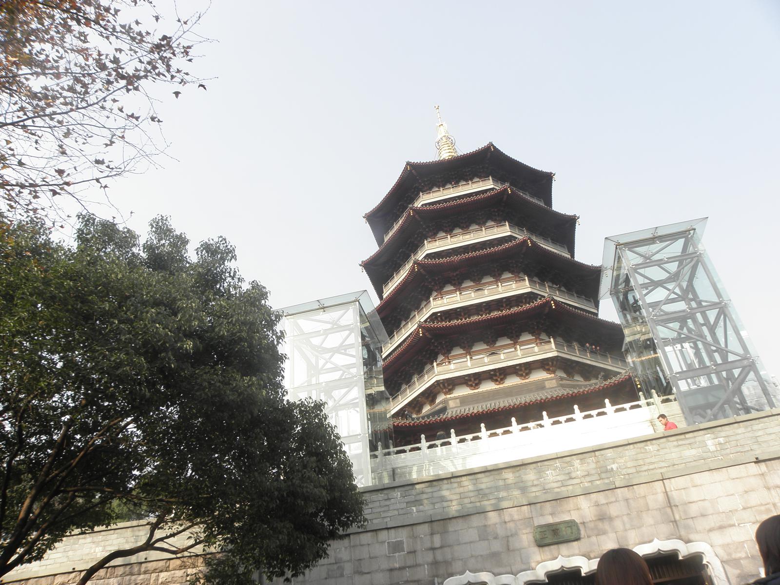 雷峰塔は「雷峰夕照」として西湖十景に数えられており、特に夕暮れの風景が美しいとされています。最上階からは西湖の至る所から見ることができます。雷峰塔は明の時代に戦火で放火され、レンガの塔身のみが長い間、残っていましたが、雷峰塔のレンガが病気や安産に効果があるという伝説により、塔のレンガの破片が長い間に人々によって何度も持ちさられたことで脆弱になり、1924年に突然倒壊してしまったようです。現在の雷峰塔は鉄筋コンクリートで再建されたものですが、建物の地下は建設当時の遺跡が展示されています。