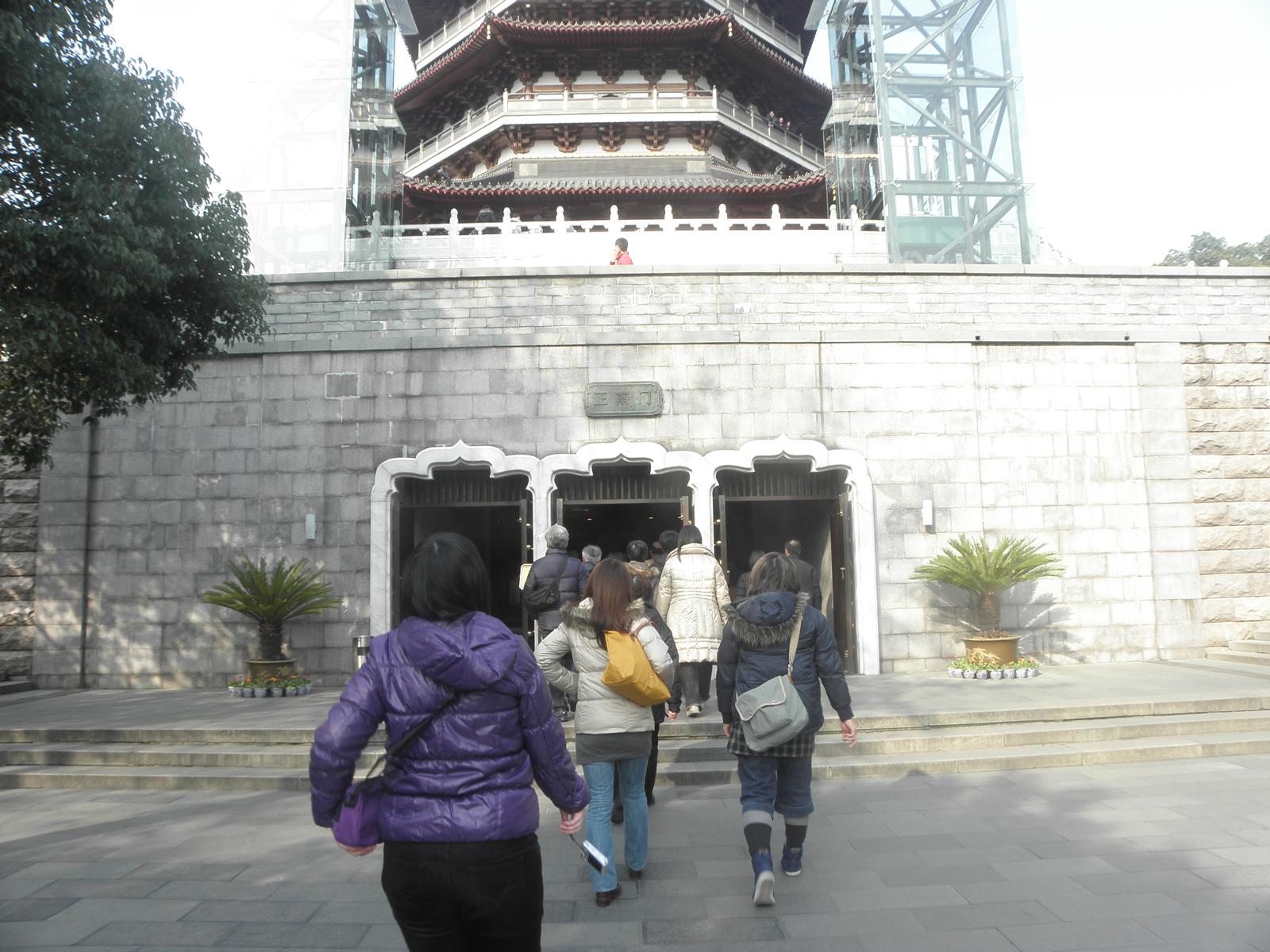 (雷峰塔の一階。ガラスでできたシースルーな造り。エレベータで最上階まで運んでくれます。)