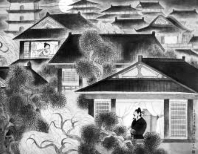 ある春の夜、放浪先の洛陽の宿屋に泊まっていた李白。洛陽の街全体が静寂と暗闇に包まれている中、ぼんやりと物思いに耽っていました。