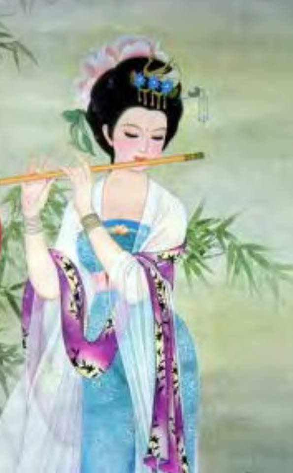 その時、どこからともなく、春風の中に混じり入り、''折楊柳"を奏でた笛の音が洛陽の街中に聴こえてきました。中国では旅立つ人に柳の枝を折って送る習慣があり、この習慣に基づいて、別れの悲しみを歌った歌を''折楊柳"といいます。"折楊柳''を聞いて故郷の視線を思い出し、洛陽の地にいる李白が思わず涙ぐんだのでした。