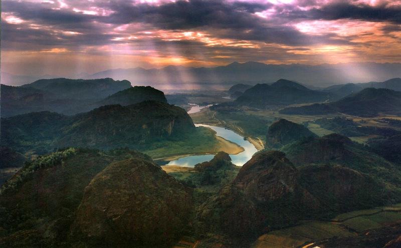 龍虎山は江西省鷹潭市の南から20キロ離れたところにあり、中国道教の発祥の地とされています。「神仙所都」「人間福地」と譬えられ、独特の「丹霞地貌」(赤みを帯びた堆積岩が織りなす地形)と清流が織りなす自然の風景、そして古墳群は、龍虎山の「三絶」とされています。後漢の時代に道士の張道陵が、ここで不老不死の薬を作った時に龍と虎が現れたという伝説から「龍虎山」と呼ばれるようになりました。