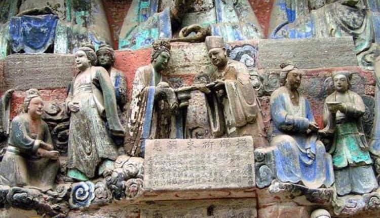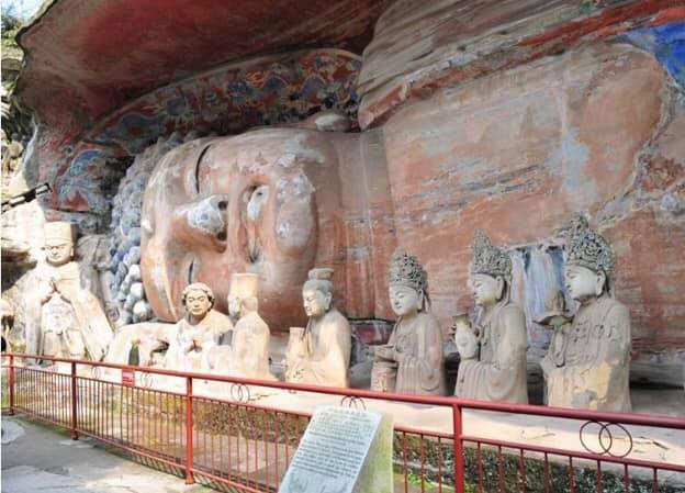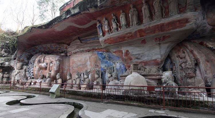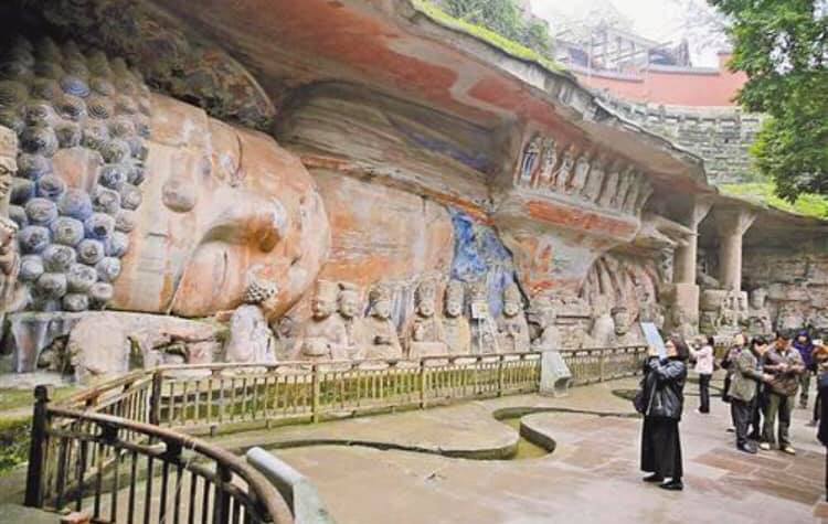 石窟は、インドからシルクロードを経て中国に伝わりました。中国の石刻群はインドの仏教の影響を受けたものが多いのですが、この大足石刻は仏教、儒教、道教を取り入れた中国独自の文化が見えるものとなっています。649年に大足石刻が切り開かれ、現在は5万体もの石刻を見ることができます。