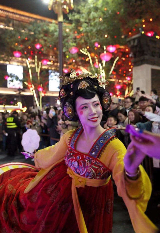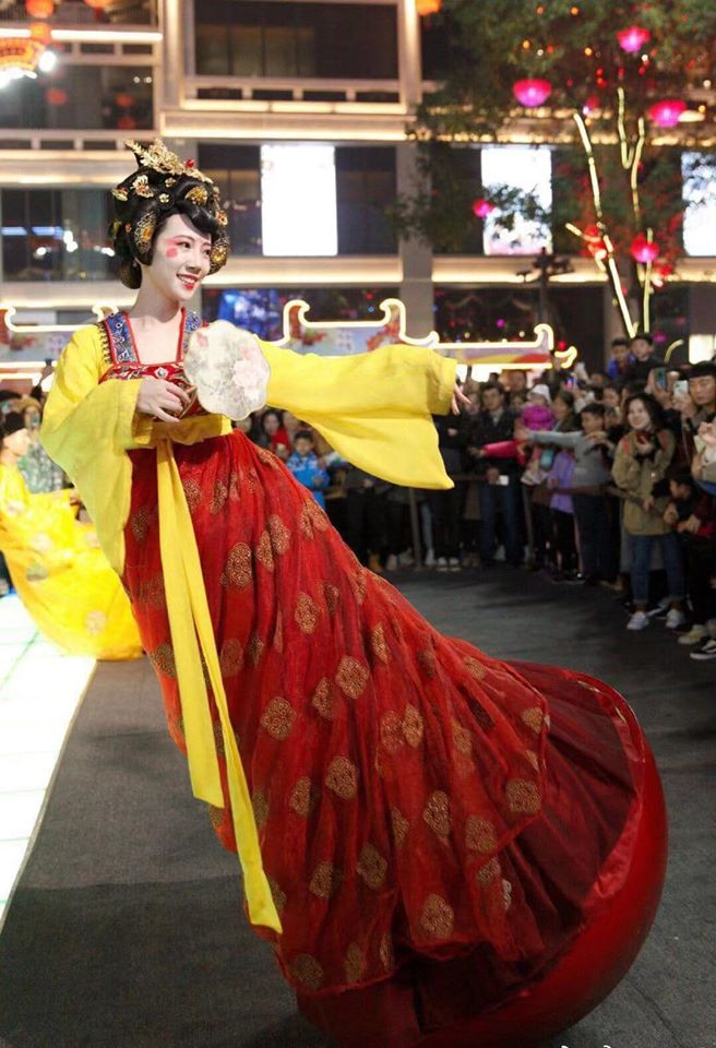女優さんはセクシーでスレンダーです。男優さんもハンサムです。彼らは唐の時代の衣装を身にまとい、タンブラーに座って音楽に合わせて揺れます。女優さんのパフォーマンスはすばらしく、観客を引きつけます。誰もが動画を撮ってSNSにアップロードしたことで知られるようになり、話題となりました。多くの人々がSNSを通じて興味を持ち、遠方から西安まで見に来るようになりました。