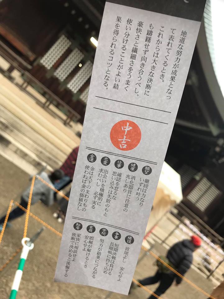 特製お雑煮を食べて苦しくなったお腹をゆすりながら初詣に行ってきました。おみくじの結果は中吉!まずまずですね^ ^。