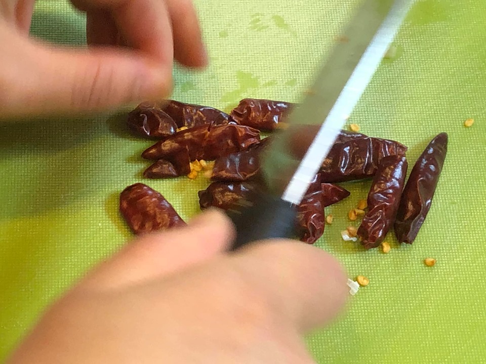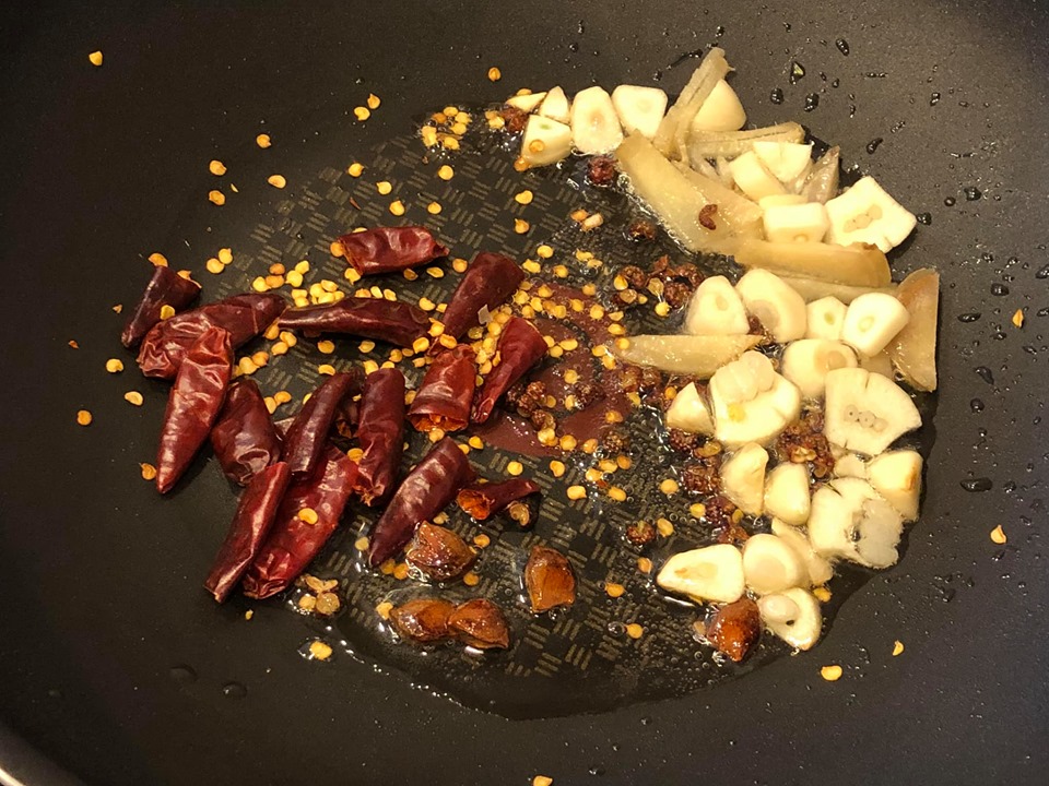 今回はシャコの中国の屋台で食べられているような中華風の麻辣な料理方法です。まず生きたままのシャコさんに小麦粉をまぶして炒めた後、ニンニク、生姜、八角、そして唐辛子を千切りして炒めた物を混ぜ、みじん切りした長ネギを入れて出来上がり!シンプルですが、ぷりぷりしたシャコのお肉とぴったりで辛くて美味しい!