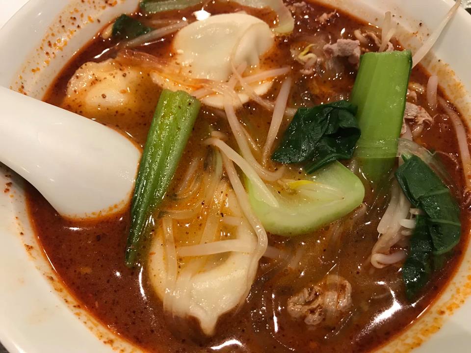 早速メニューを確認。トッピングがいろいろ選べるみたいで楽しみ!!2辛以上はホントに辛いとのことで勧めませんとのことでしたが、辛いのが大好きなので、とりあえず3辛にして水餃子、もやし、チンゲンサイ、羊肉をトッピングすることに。