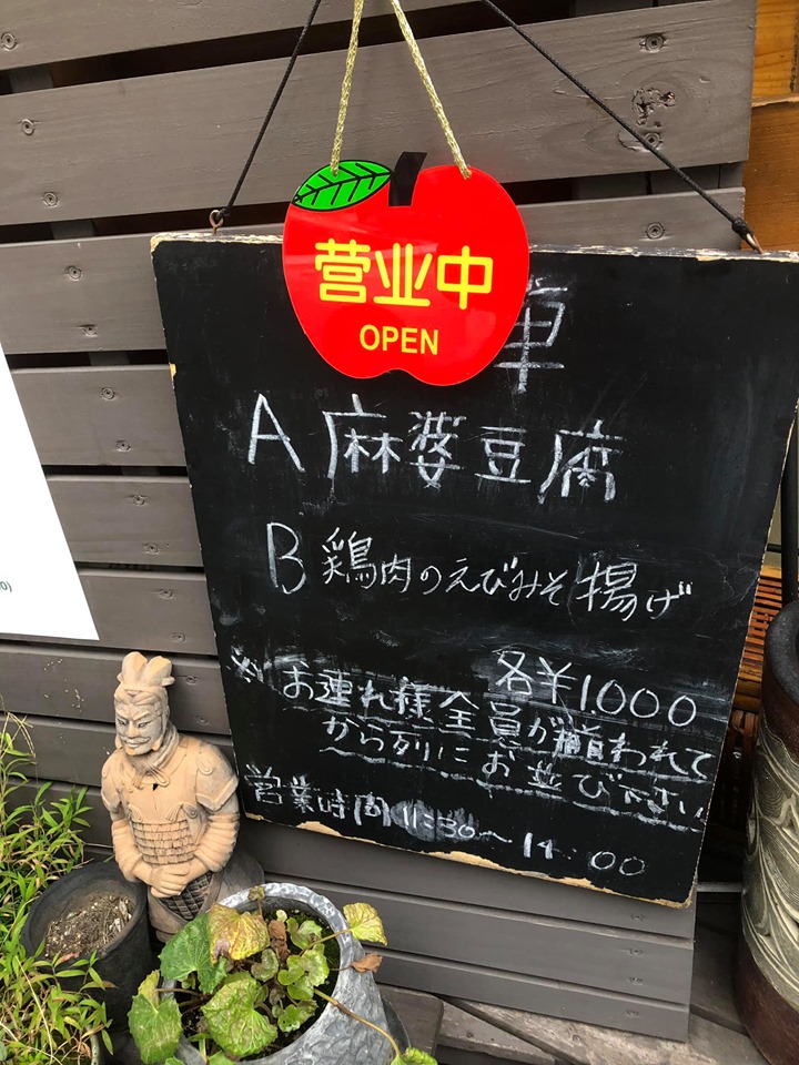 路地裏の、ややわかりにくい場所にあり、また私が行った時には平日の昼にも関わらず、長蛇の列ができていました。本格四川料理が味わえるとあって関西中から美食家が集まってくるようです。