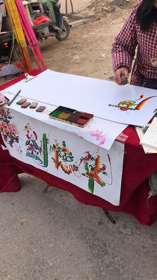 写真は彼の故郷の農村の春節の賑やか様子。コウノトリがいる木まで赤いお飾りが飾られ、お店がいっぱい。異国の文化を垣間見た感じがして面白いですね。