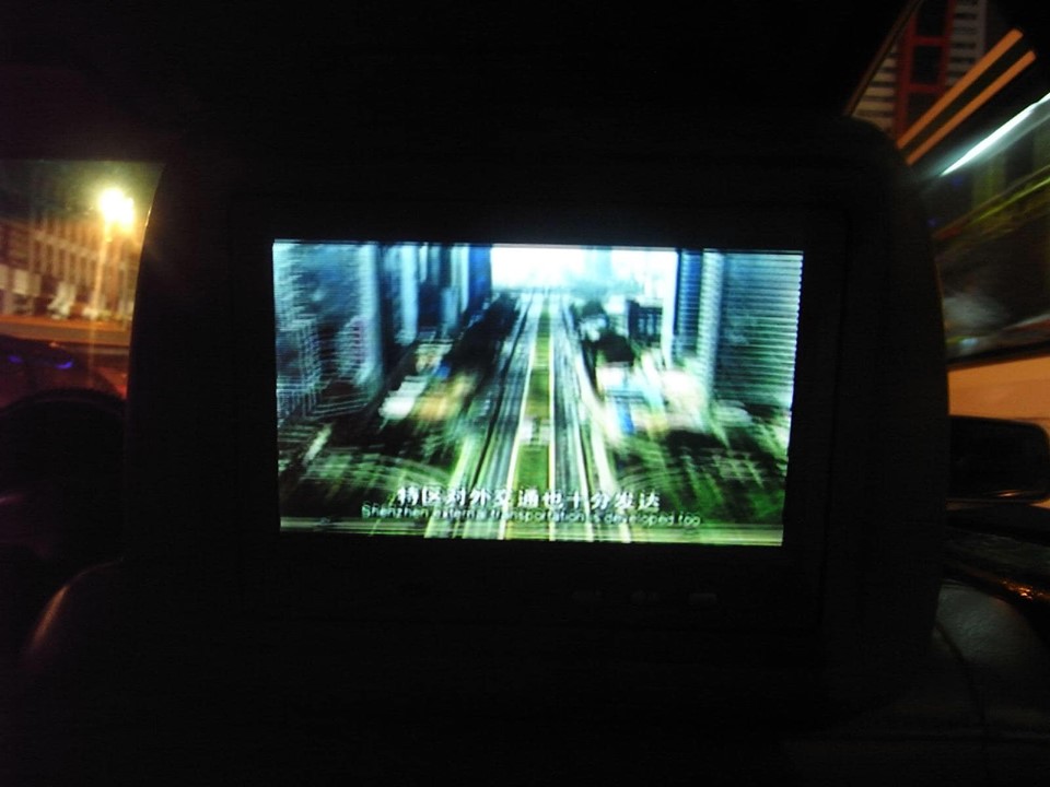(助手席に設置されたモニター。深センの観光案内です。ミスタービーンも放映されたり、内容は豊富でよかったです。)