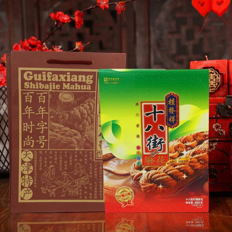 天津では十八街麻花はどこでも買え、全ての通りに一店舗は十八街麻花があります。もし天津空港に降りたら、空港の店舗で買うことができます。天津人はプレゼントを送る時は、見た目がよく、中身も美味しい十八街麻花の箱詰めを選びます。