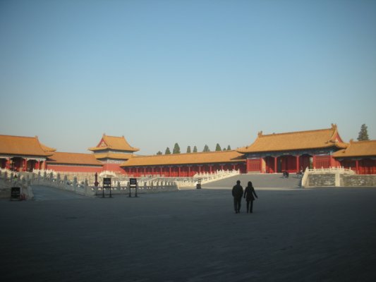 南門を抜け、大和門を抜けるとそこには広大すぎる広場があります。この広場に無数の役人が集まり、太和殿にいる皇帝からの命令を受けていました。 この広場は、ラスト・エンペラーで溥儀が即位する儀式のシーンで、無数の官吏がずらりと並んでいた場所ですね。