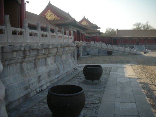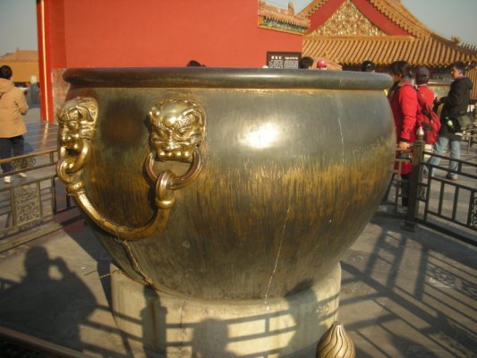 (大和殿の防火用水。青銅の上に金が塗られていたが、諸外国によって剥がされました。)