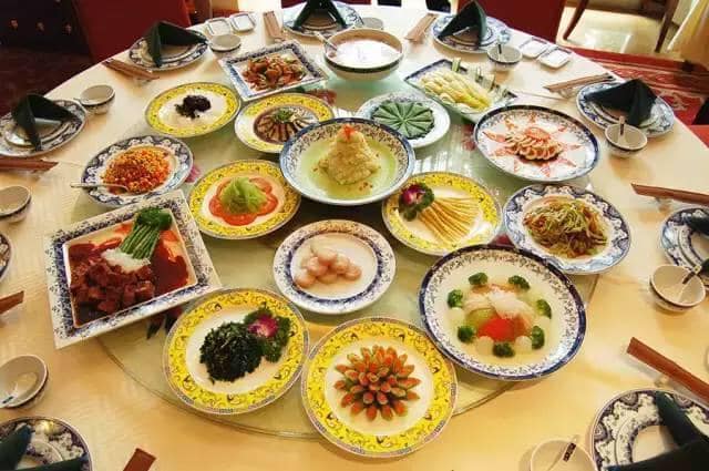 (素食を並べた円卓!美味しそう!)
